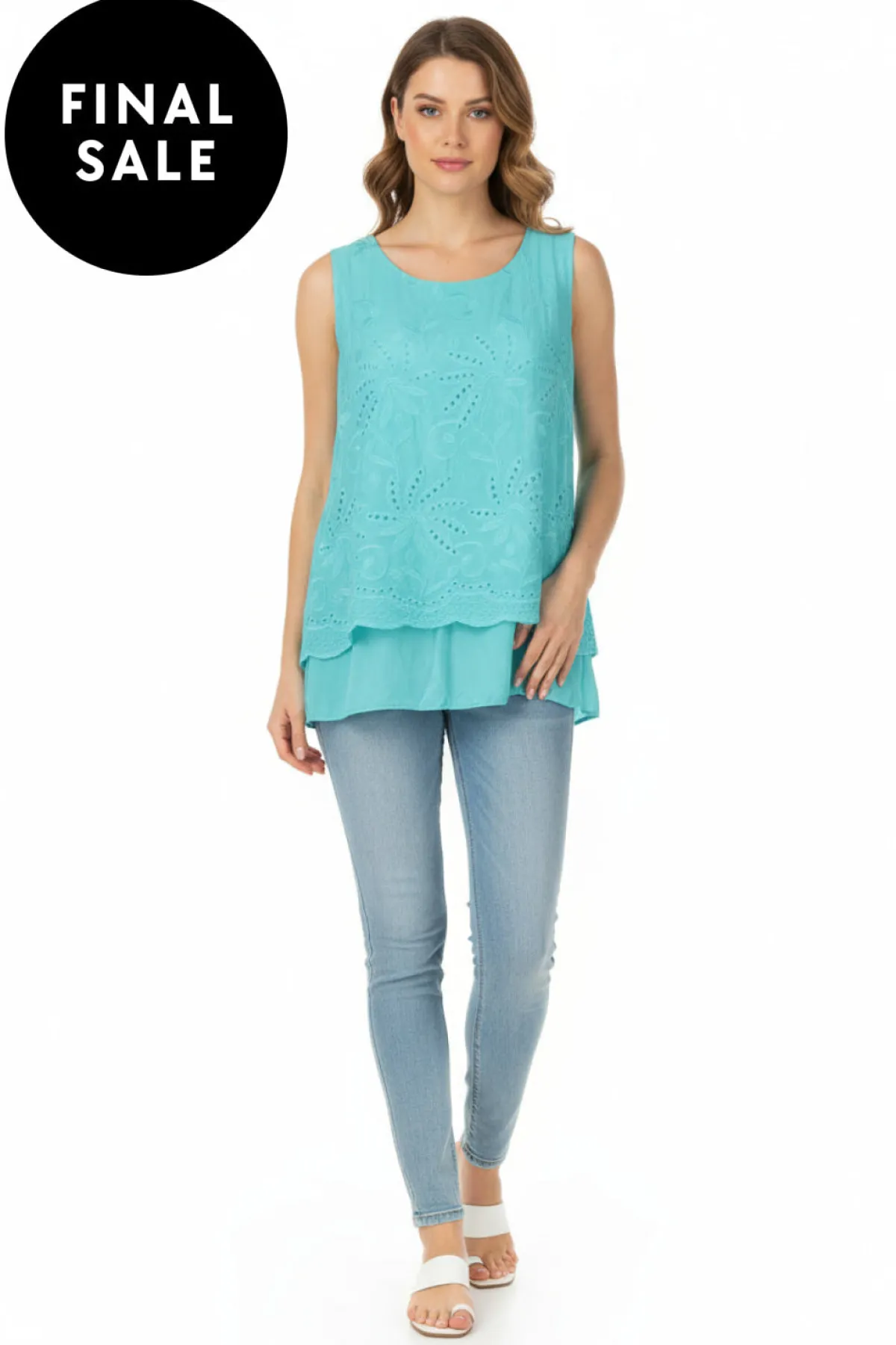 Indulge in effortless sophistication with our WOVEN S/LESS TOP. This versatile summer top offers a timeless blend of style and comfort. Its lightweight, embroidered design and sleeveless silhouette make it perfect for dressing up or down. Stay effortlessly cool and chic with this must-have addition to your wardrobe.