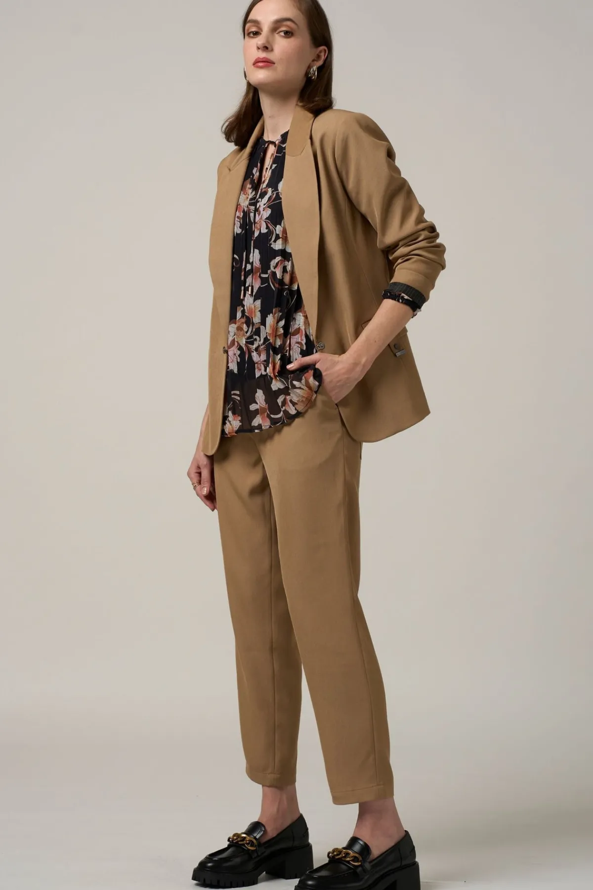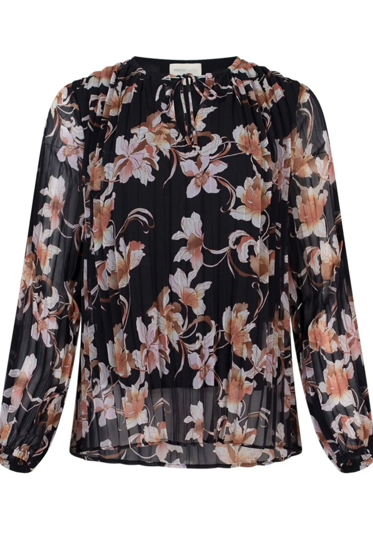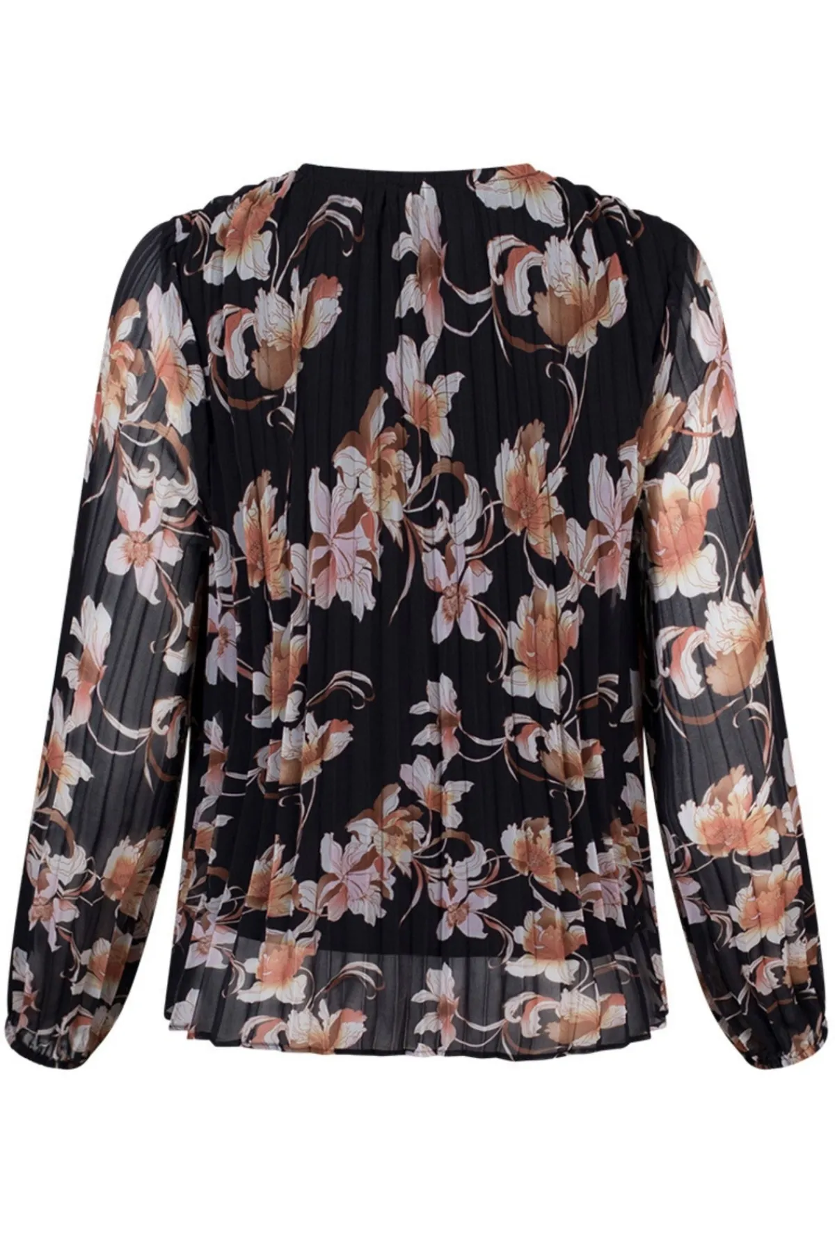 The pleated floaty design features a tie neckline for a sophisticated touch. With thin elasticated cuffs and lining, this blouse exudes luxury and refinement. Perfect for a night out or a day at the office.