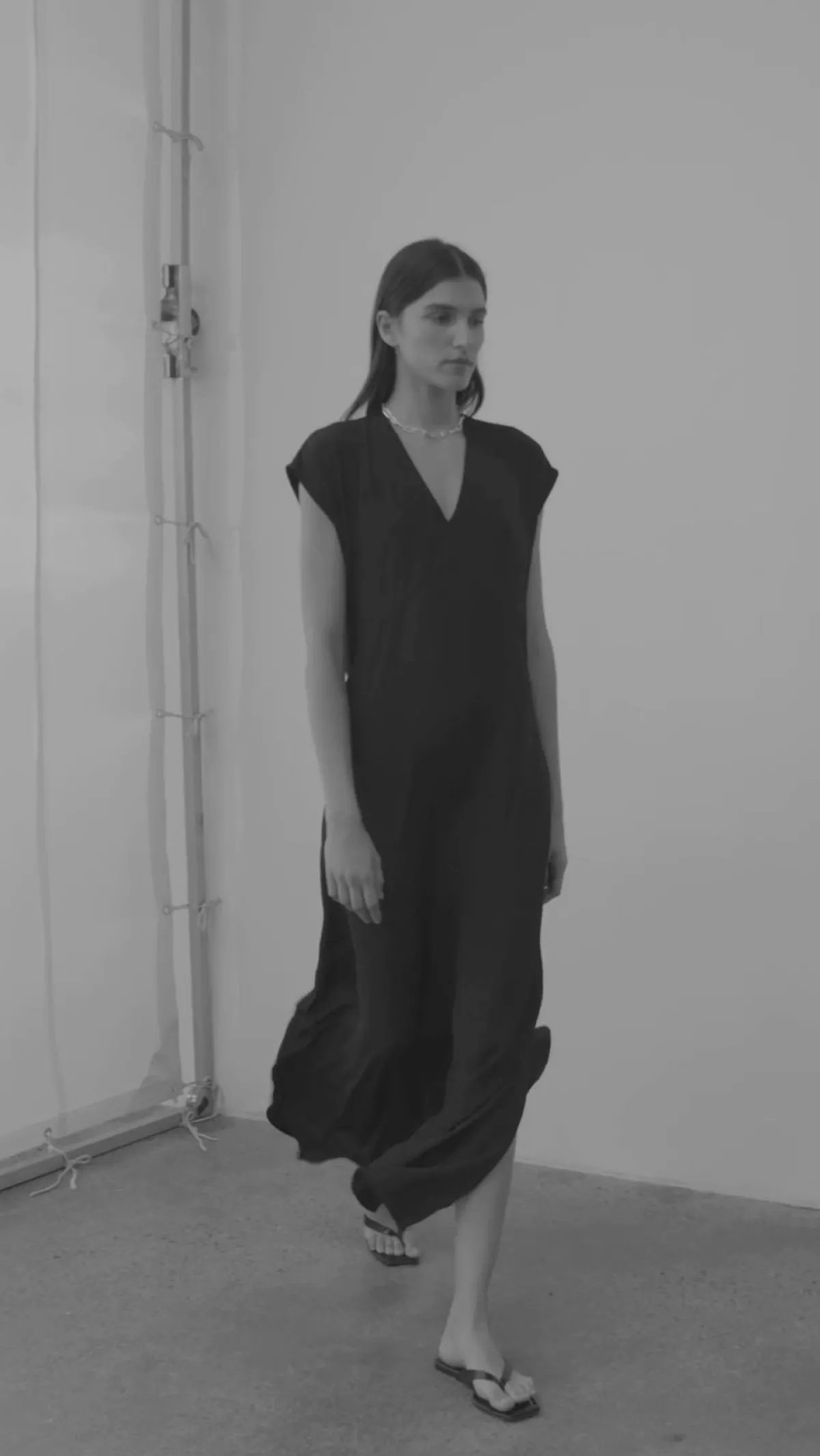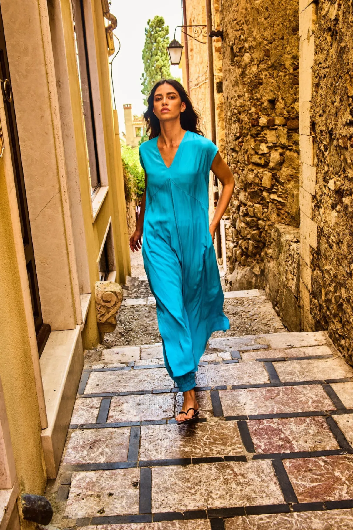 The Mela Purdie Maxi Slice Dress, crafted from Mache is a wardrobe essential. This Maxi length style features a v-neckline down front and side splits at hem for extra movement. This dress has endless styling possibilities.