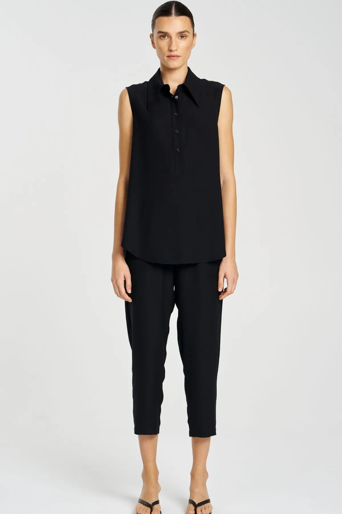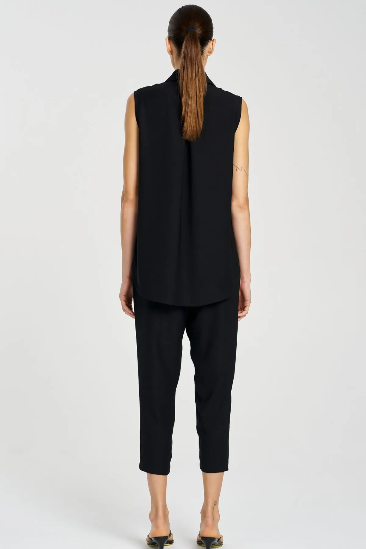 Cut from Mela Purdie’s Micro Denier with it’s fluid handle and low sheen finish. The Capri pants are cropped in length and cut for tapered fit through the leg.