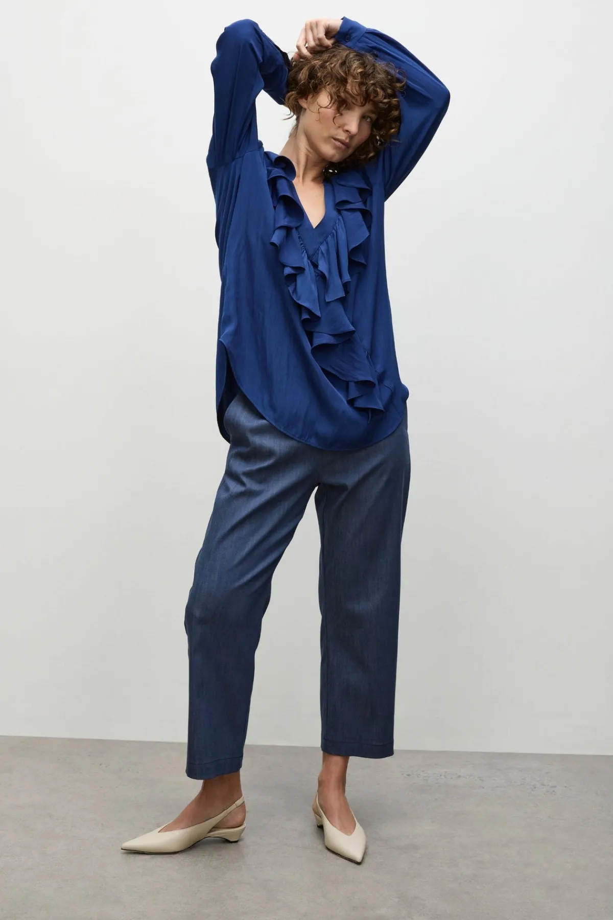 Discover Mela Purdie’s Soft Stretch Denim fabric, characterised by its super 4-way Stretch & Memory. The Tapered Flat Pant is a fitted silhouette with purposeful comfort.