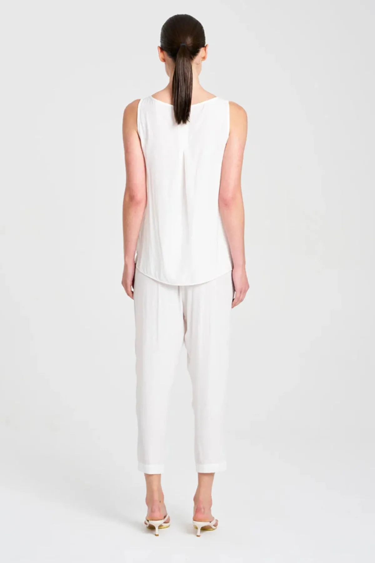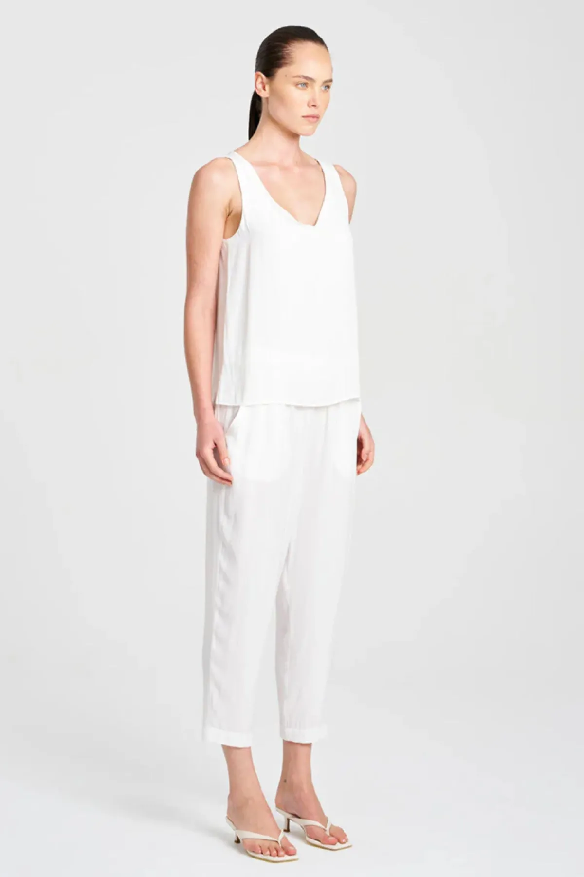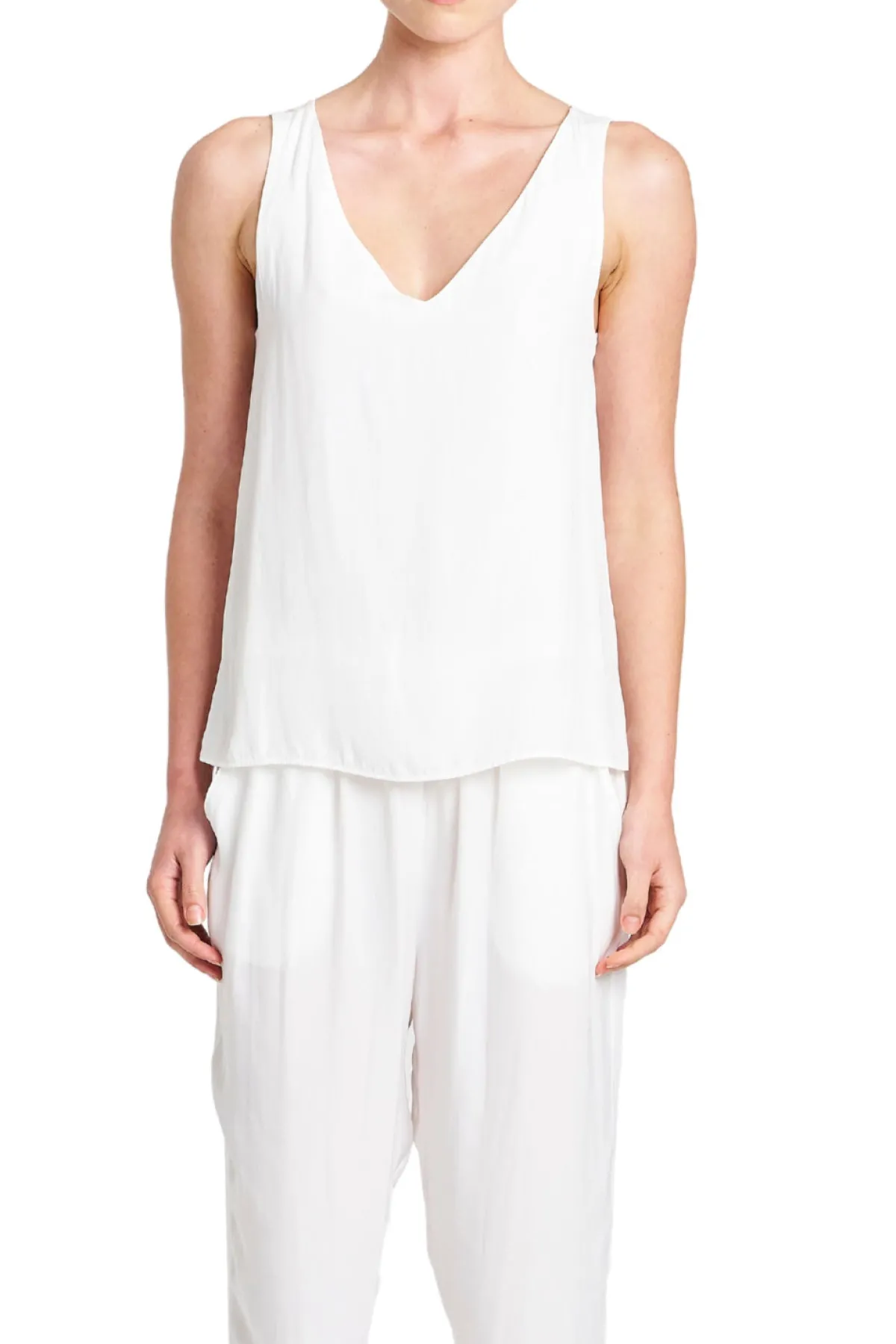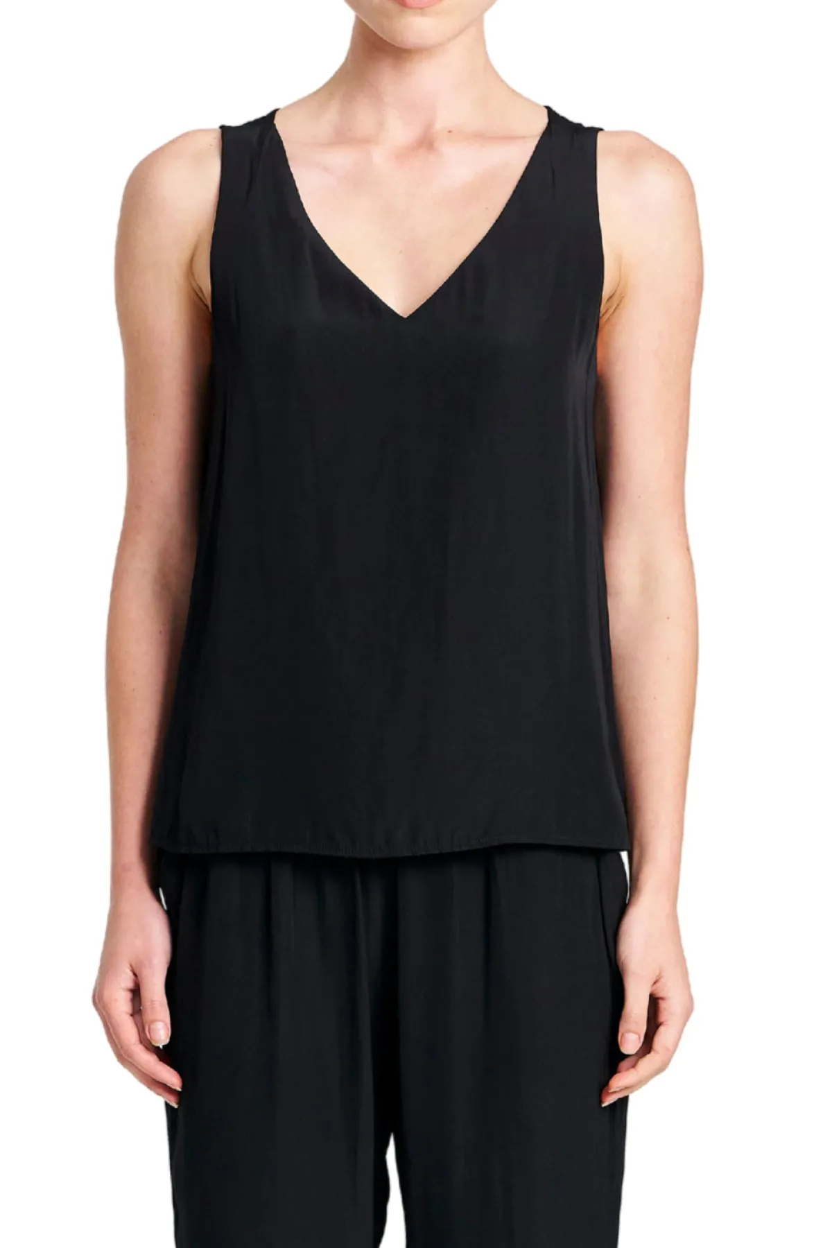Crafted from Mela Purdie’s fluid Mache, offering a fuller bodied feel and tactile face. The Audrey Tank is a Mela Purdie essential with a universally flattering soft v-neckline. The fully covered back features a placket for ease of movement. Perfect for layering, the Audrey Tank has a stepped hem for longer length at the back and a double layered front for extra coverage.