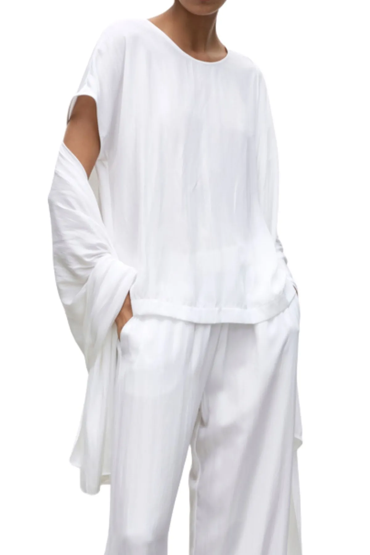 The Cap Shell from Mela Purdie features a cap sleeves, round neckline and a relaxed shape silhouette. Crafted from 100% technical polyester, Mache offers a full bodied, high fashion look that combines style and comfort in a user-friendly fabrication, that is machine washable and ideal for travel.