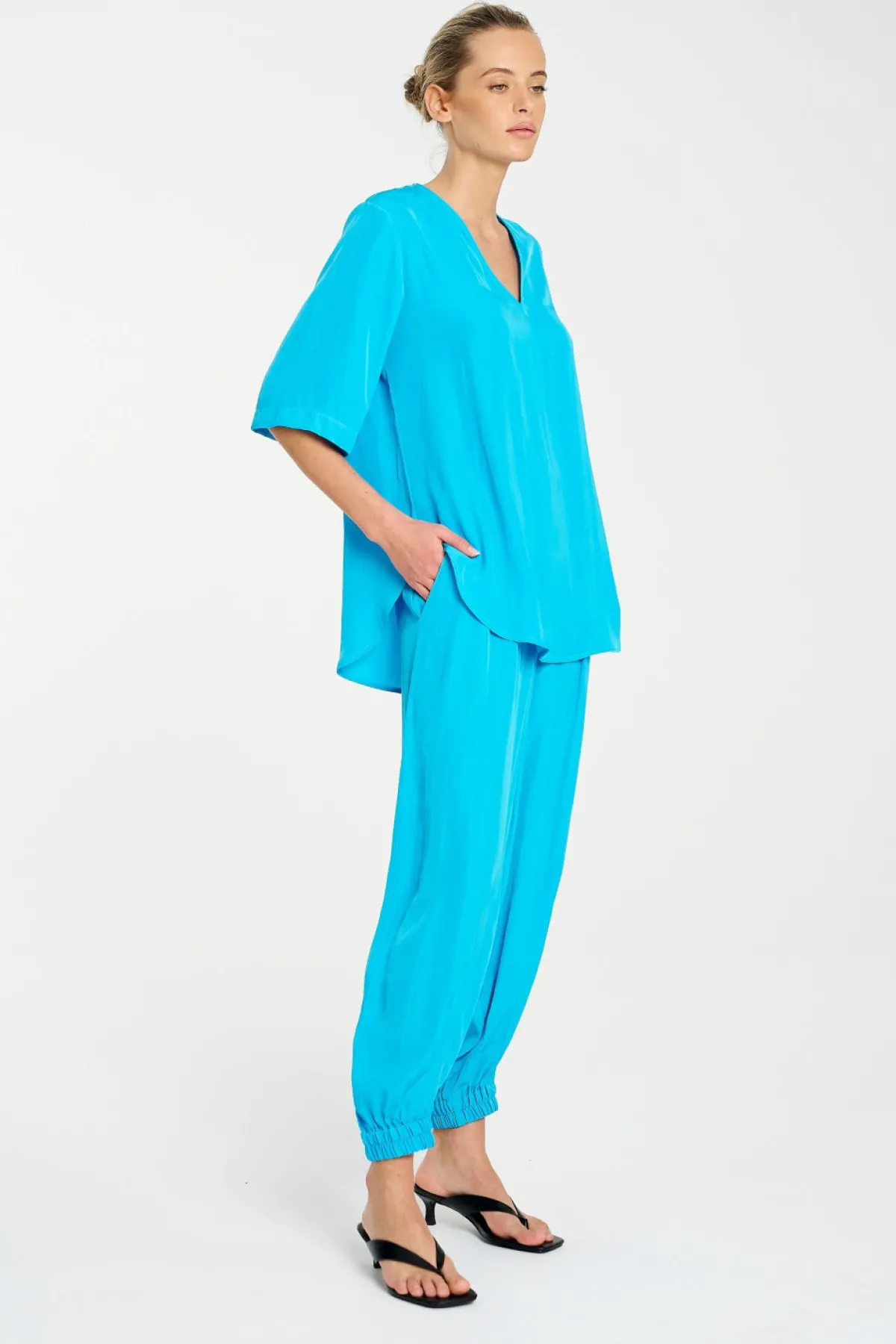 Crafted from Mela Purdie’s classic Mache, a fine Denier technical weave with an airflow finish. The Swish Plaza Top features a flattering V neckline and curved hem.