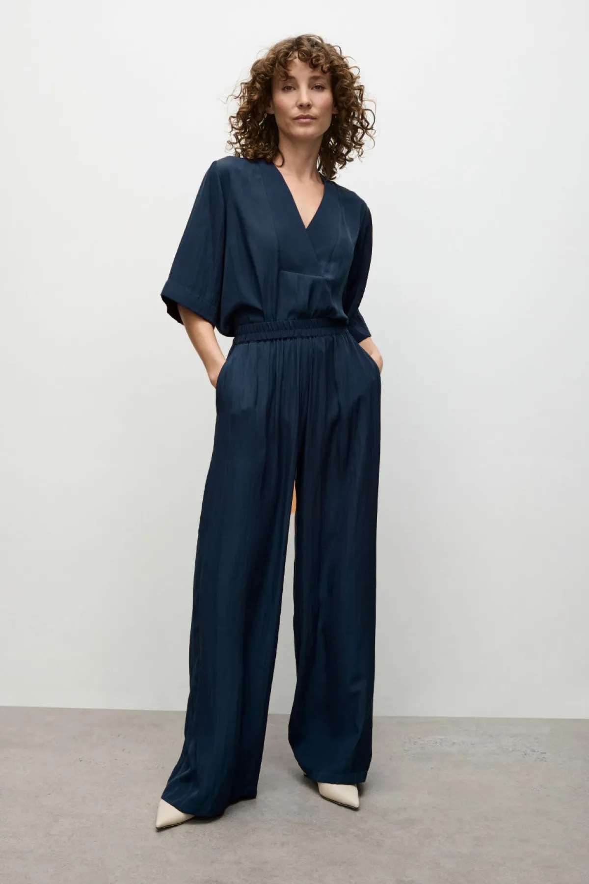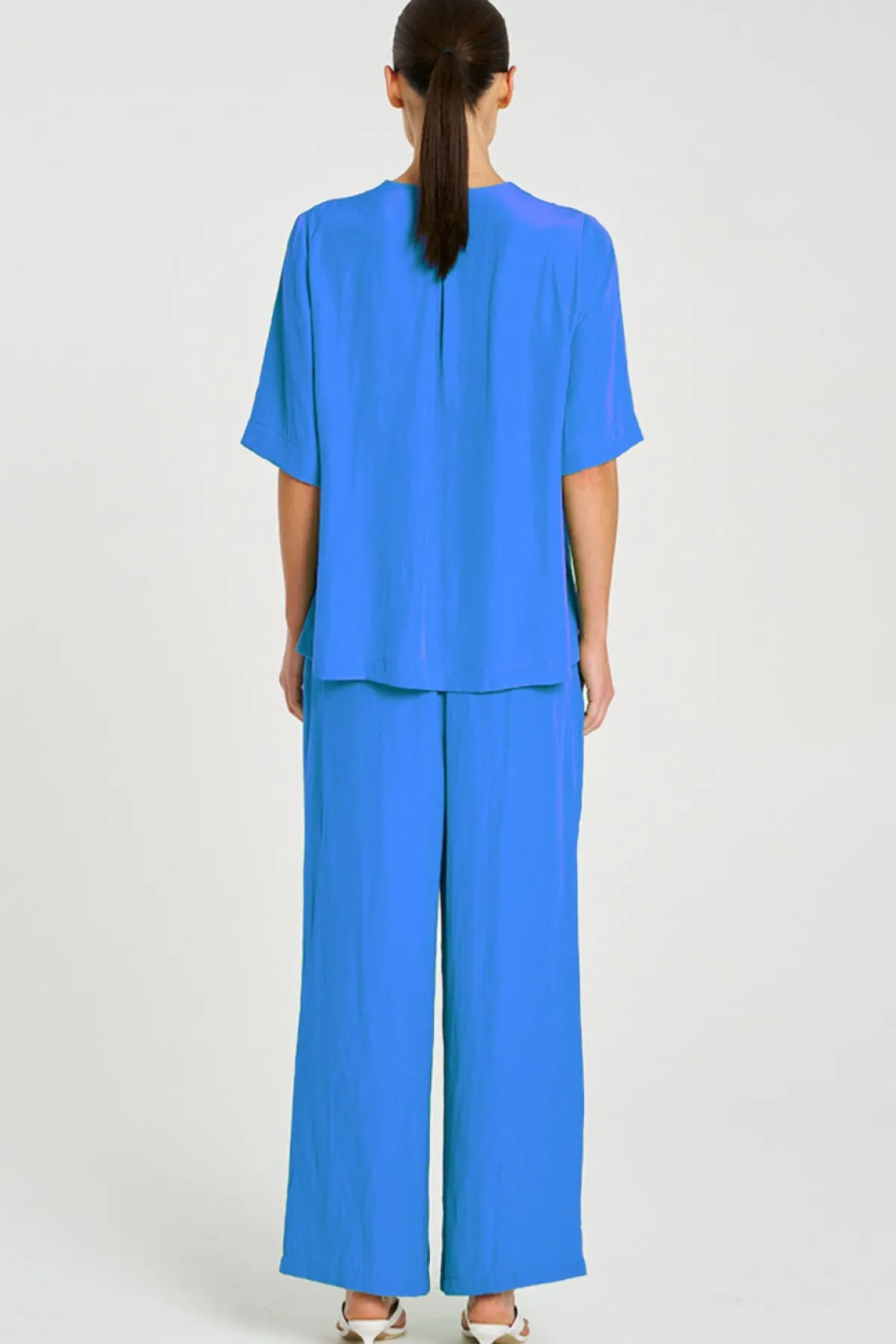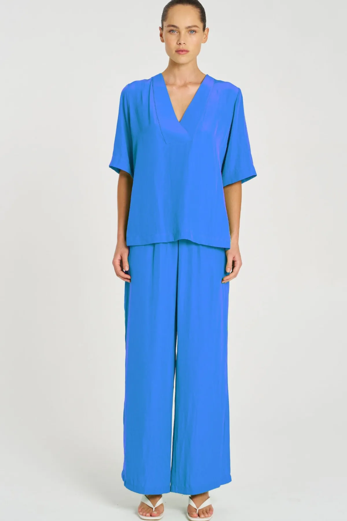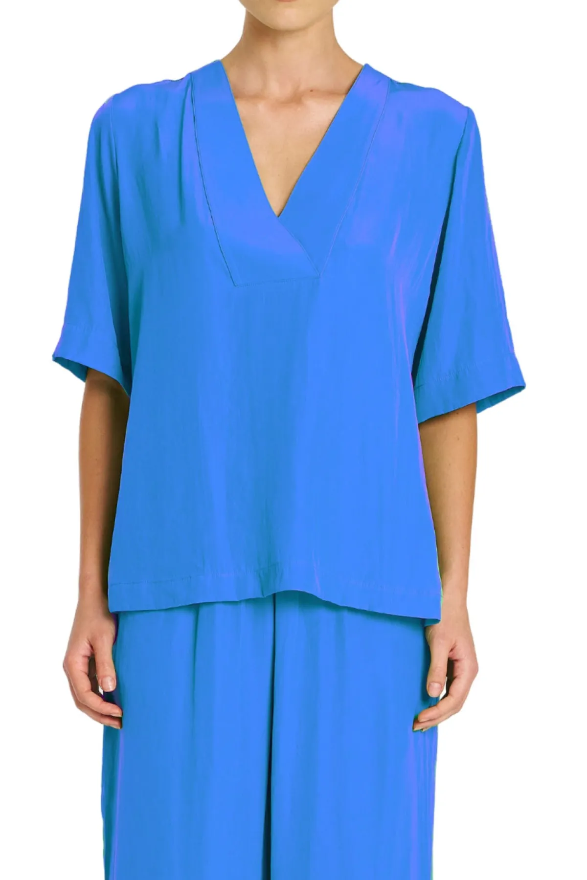 Crafted from Mela Purdie’sMache, featuring relaxed fluidity & a smooth lustre surface. TheVent Plazafeatures V Neck cross over neck detailing on a boxy silhouette.