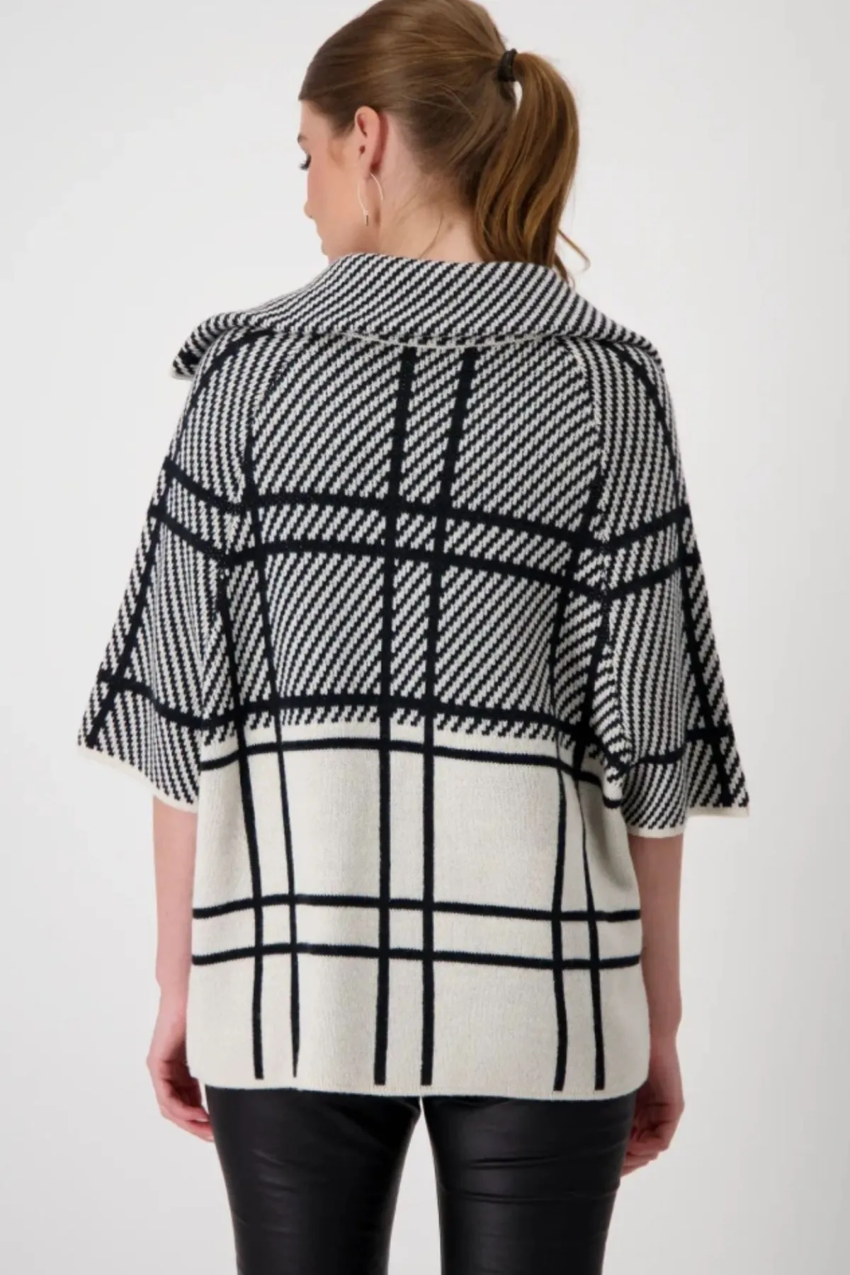 MONARI Jackets-CHECK KNIT CAPE BLACK-WHITE