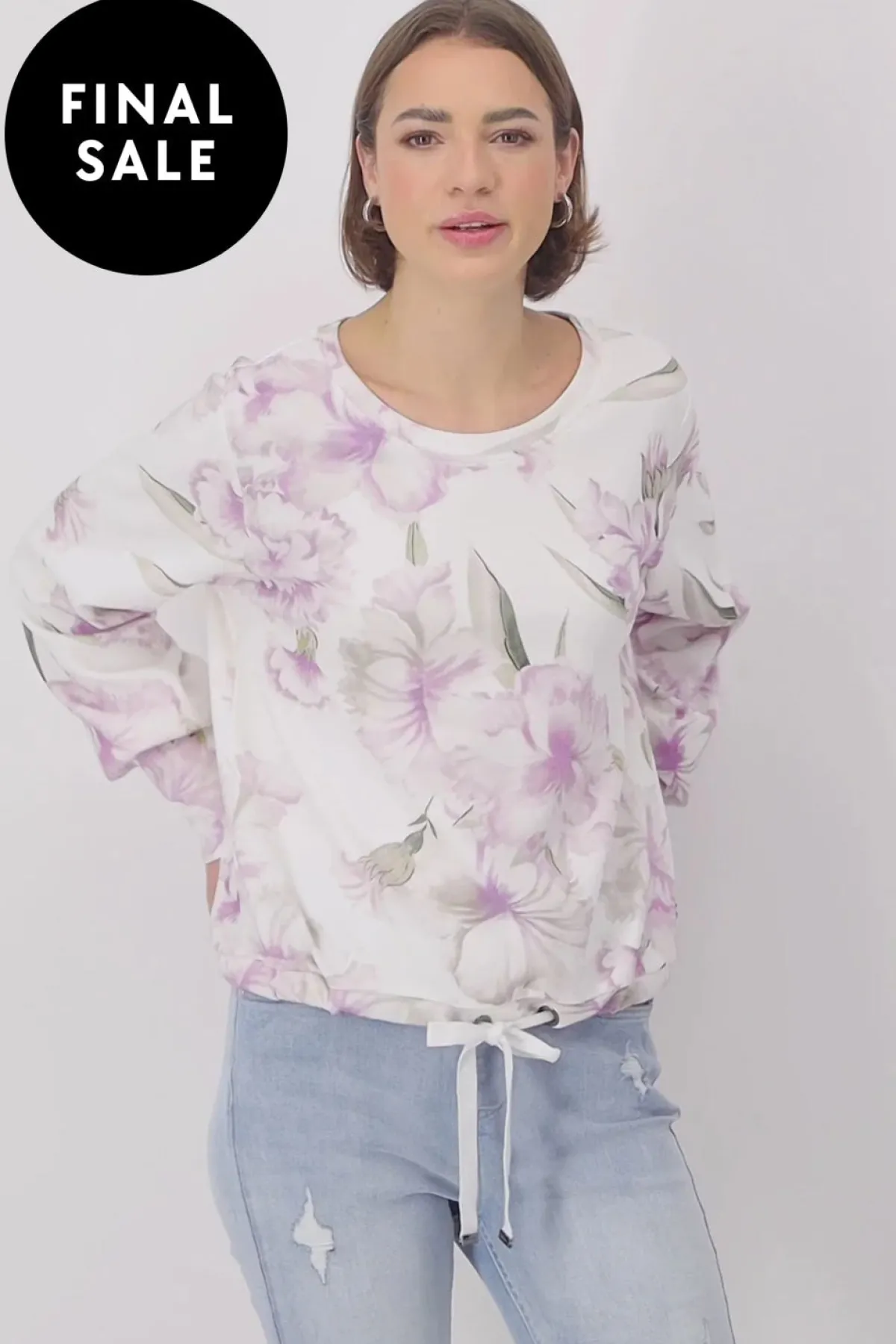 Comfortable floral print sweatshirt in stretch modal blend. Wide gathered cuffs for comfort.