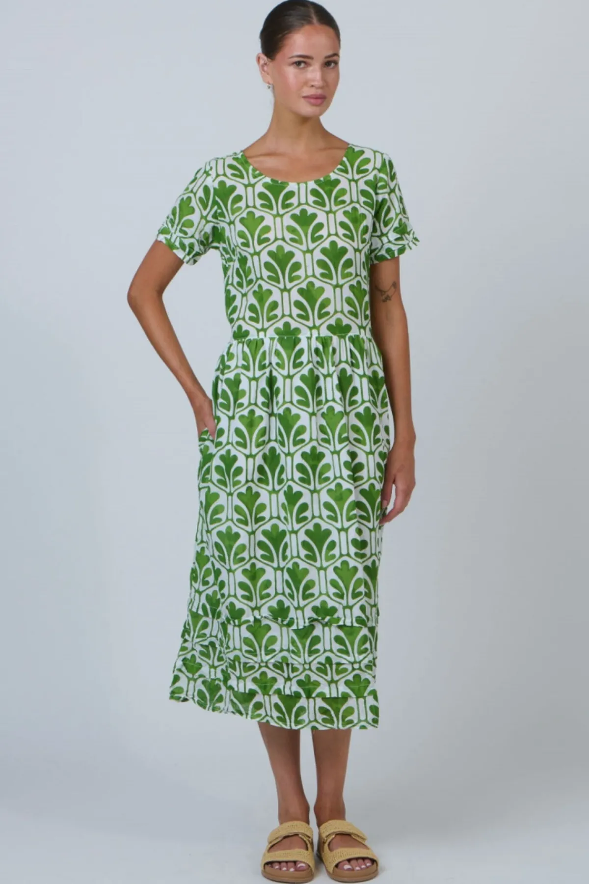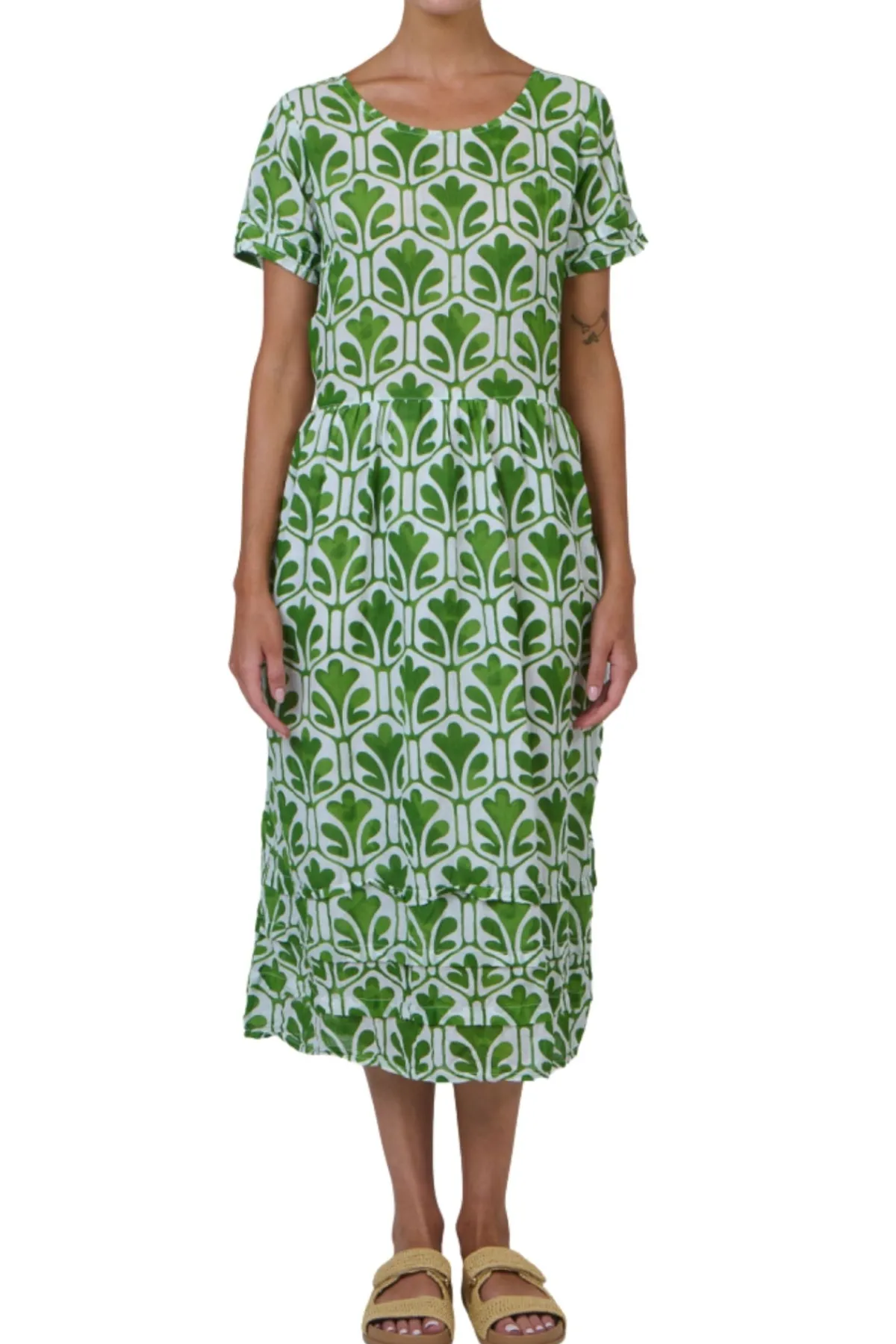 Casual yet captivating. The Midi Dress embodies effortless summer elegance with its relaxed silhouette and practical side pockets. Featuring a subtle scoop neckline, flutter short sleeves, and a gathered waist that creates graceful movement. Crafted from 100% crinkle cotton, the midi-length design offers versatile styling options for both casual outings and more dressed-up occasions.