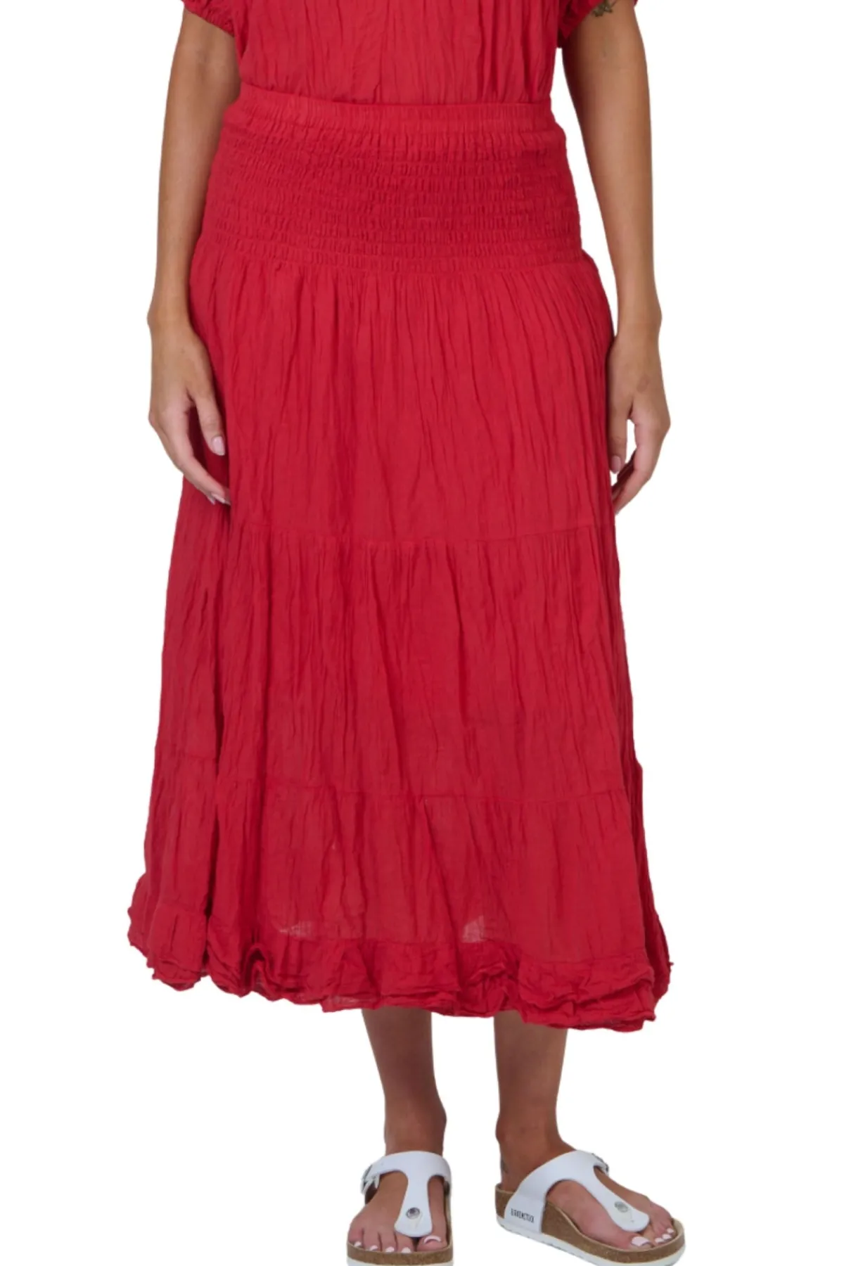 Indulge in the luxury of the Cotton Skirt from Namastai. Made from premium, crinkle cotton, this fun summer skirt is designed with tiered layers for a sophisticated touch. Experience the cool and breezy comfort while staying stylish this season.