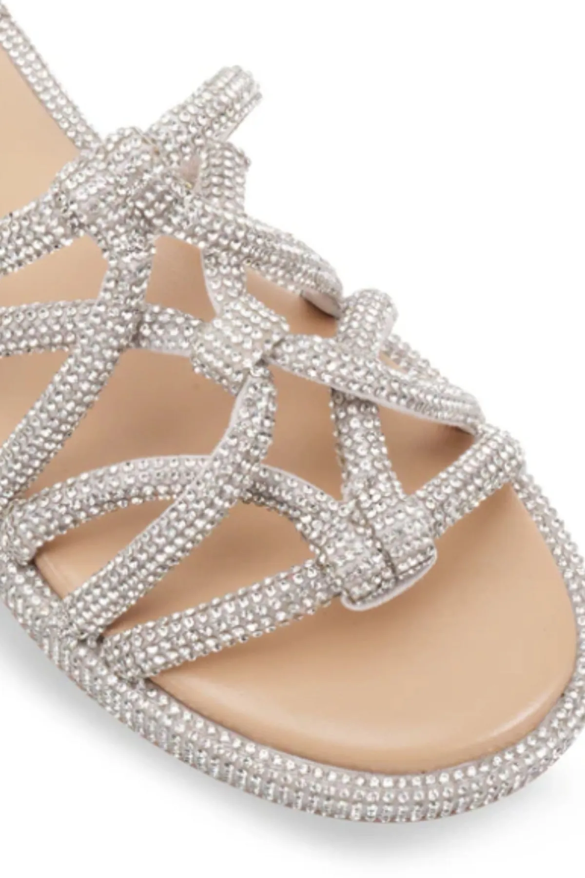 - Twisted upper straps encrusted with rhinestones