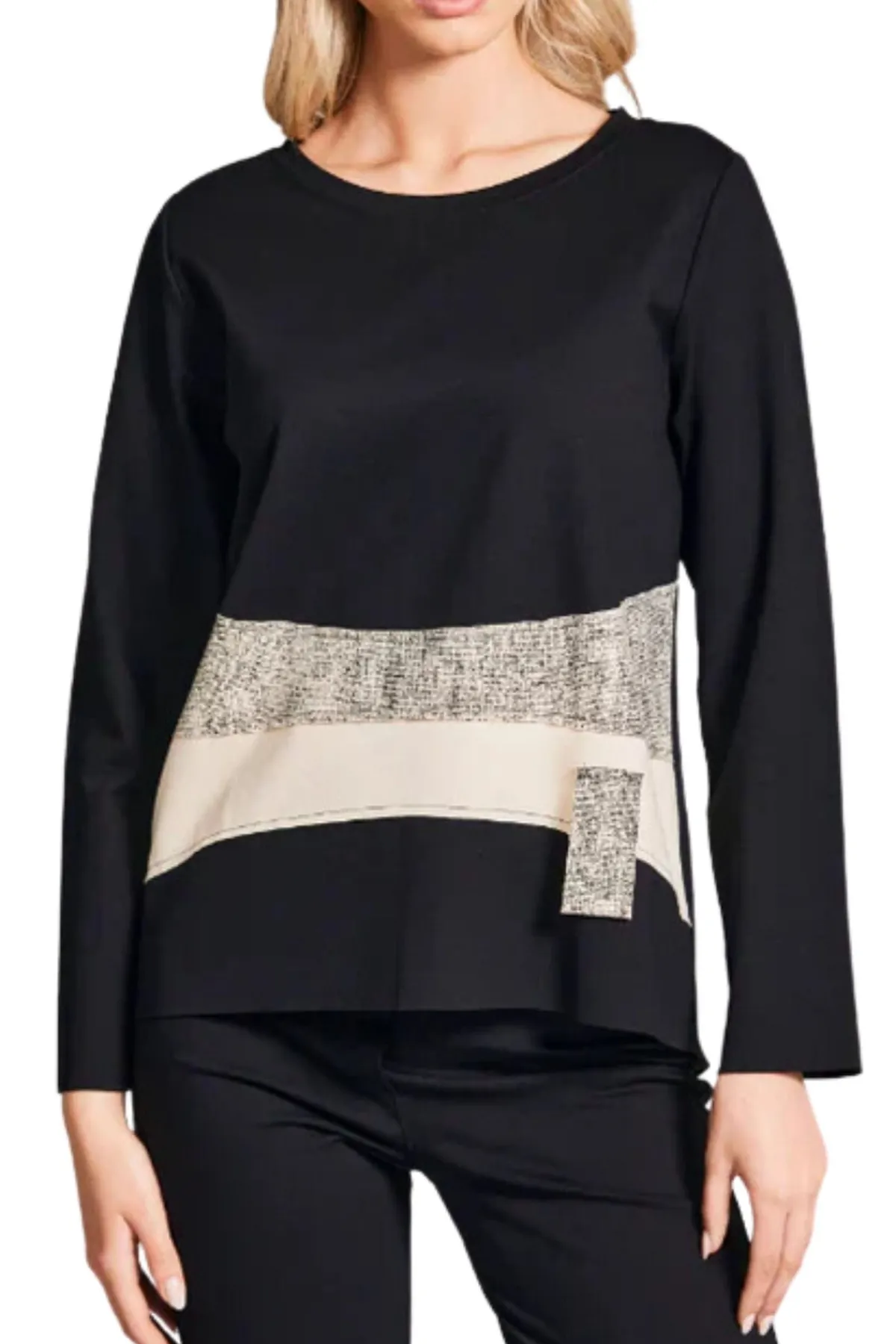 PERUZZI Tops-RAISED APPLIQUE TOP BLACK