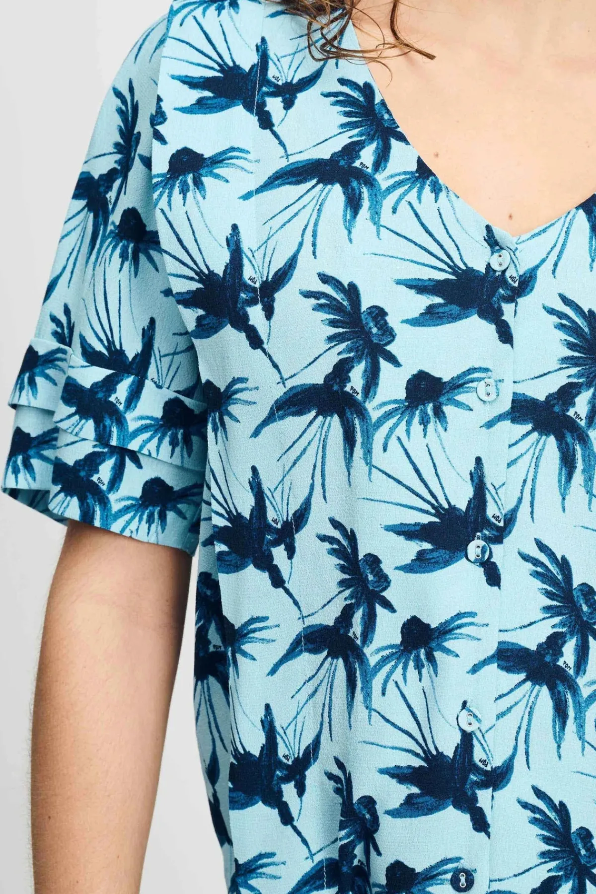 Indulge in luxury with the exquisite Artisan Blouse, boasting a sophisticated V-neckline and elegant button closure. The loose fit of this wardrobe staple, crafted with sustainable materials, exudes exclusivity and elegance.