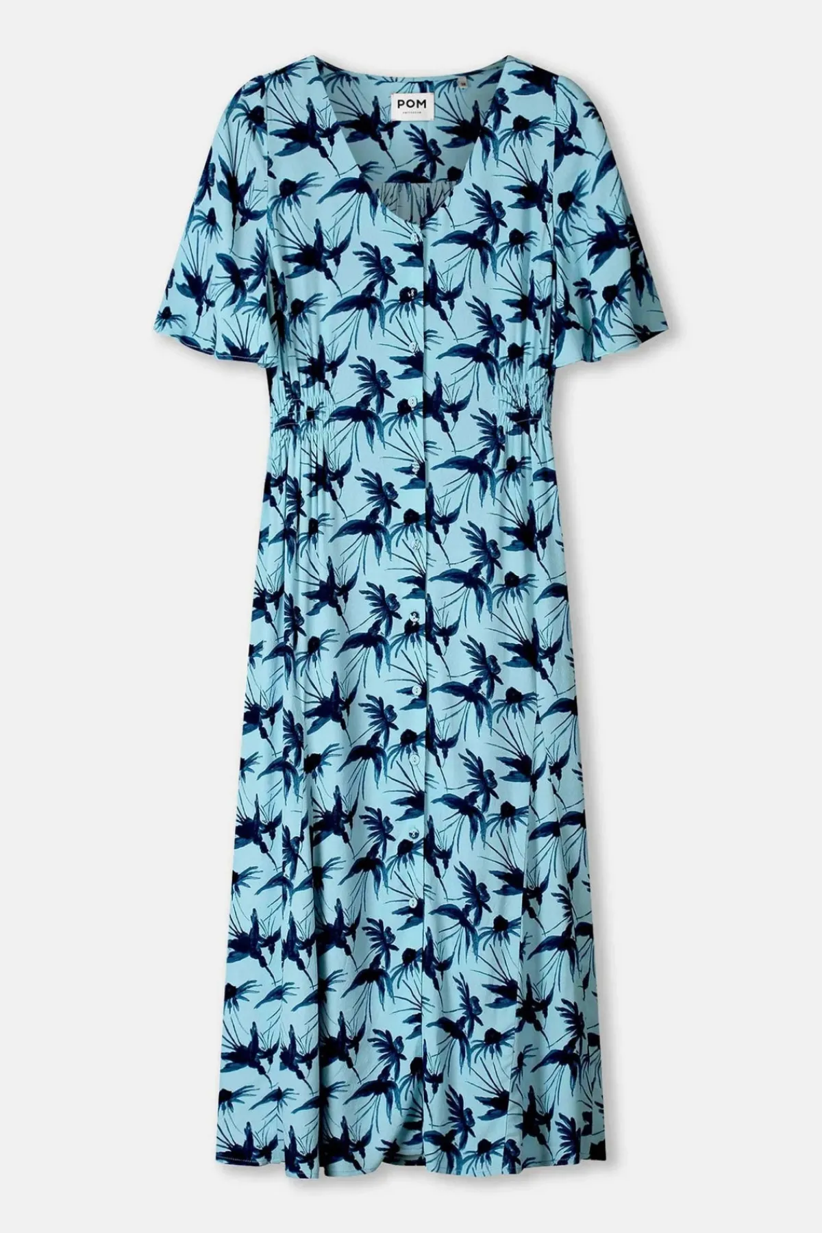 Invest in your style with this striking blue floral dress. The smocked waist accentuates your silhouette, while the sustainable fabric adds a conscious and environmentally-friendly element. Every detail is designed to make you feel elegant and exclusive, the centre of attention wherever you go.