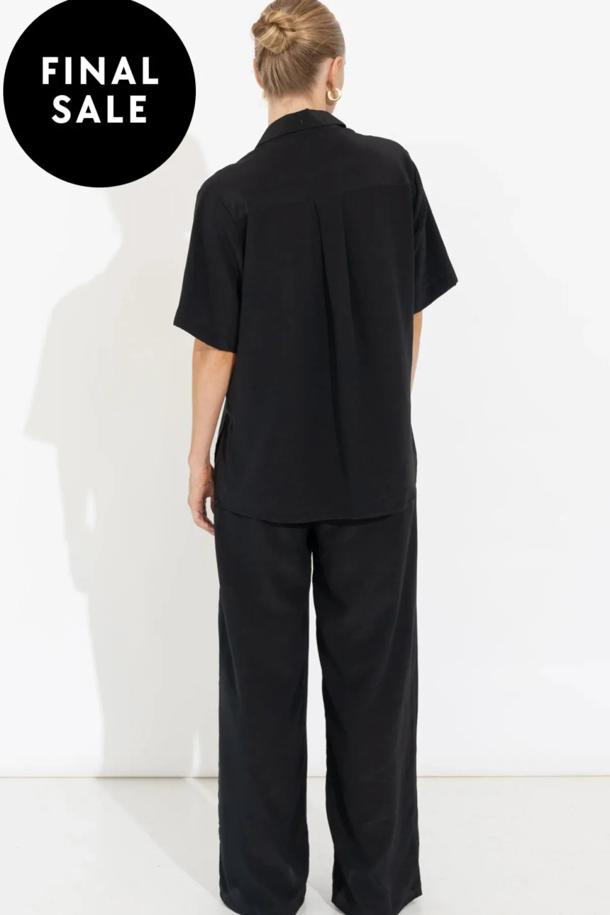 This relaxed leg pant has a drawstring waist and side pockets. Crafted in silk crepe for an elevated but effortless look.