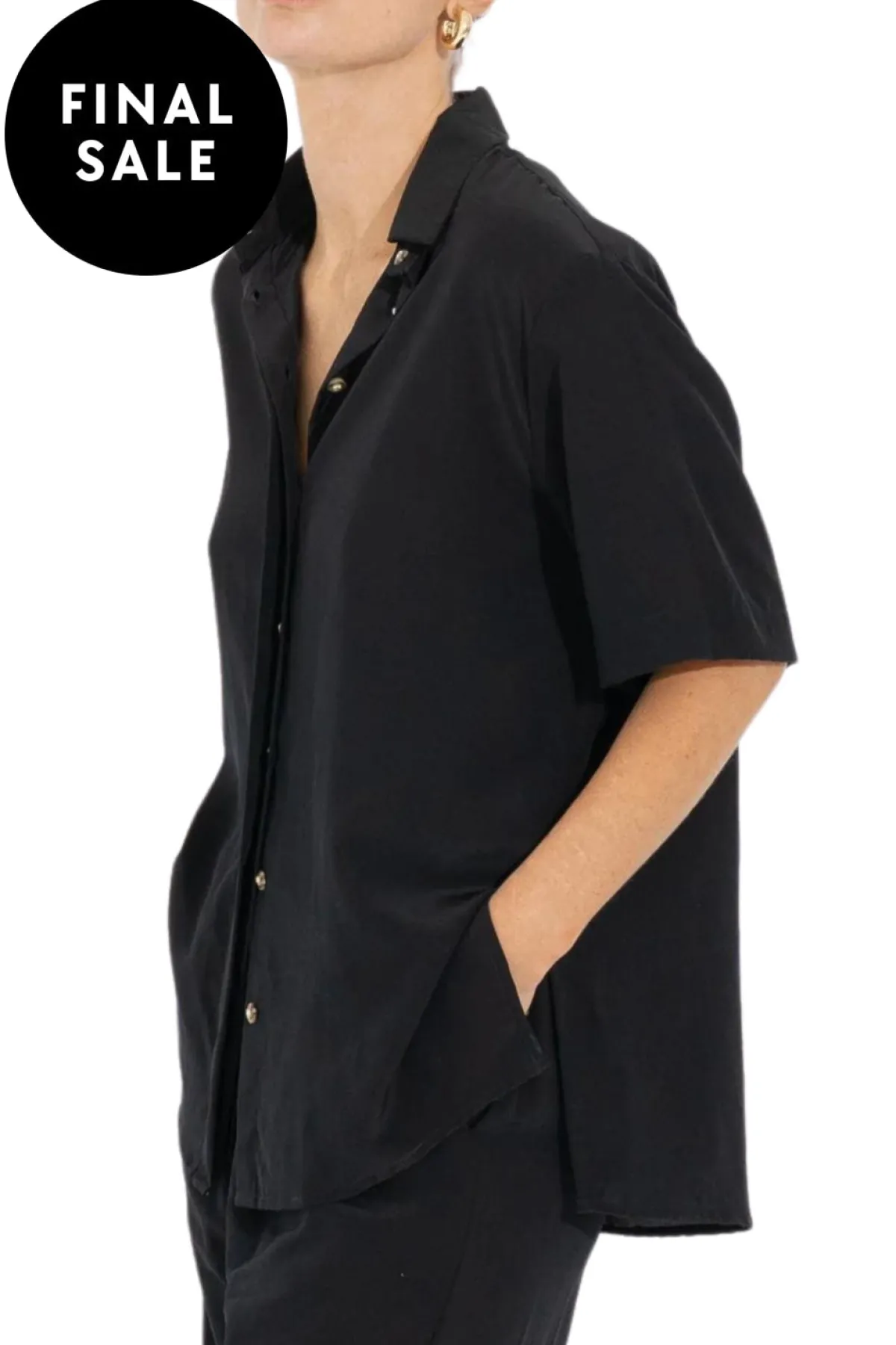 Our go-to style, this relaxedshort sleeve shirtcrafted in silk crepe for an elevated but effortless look.