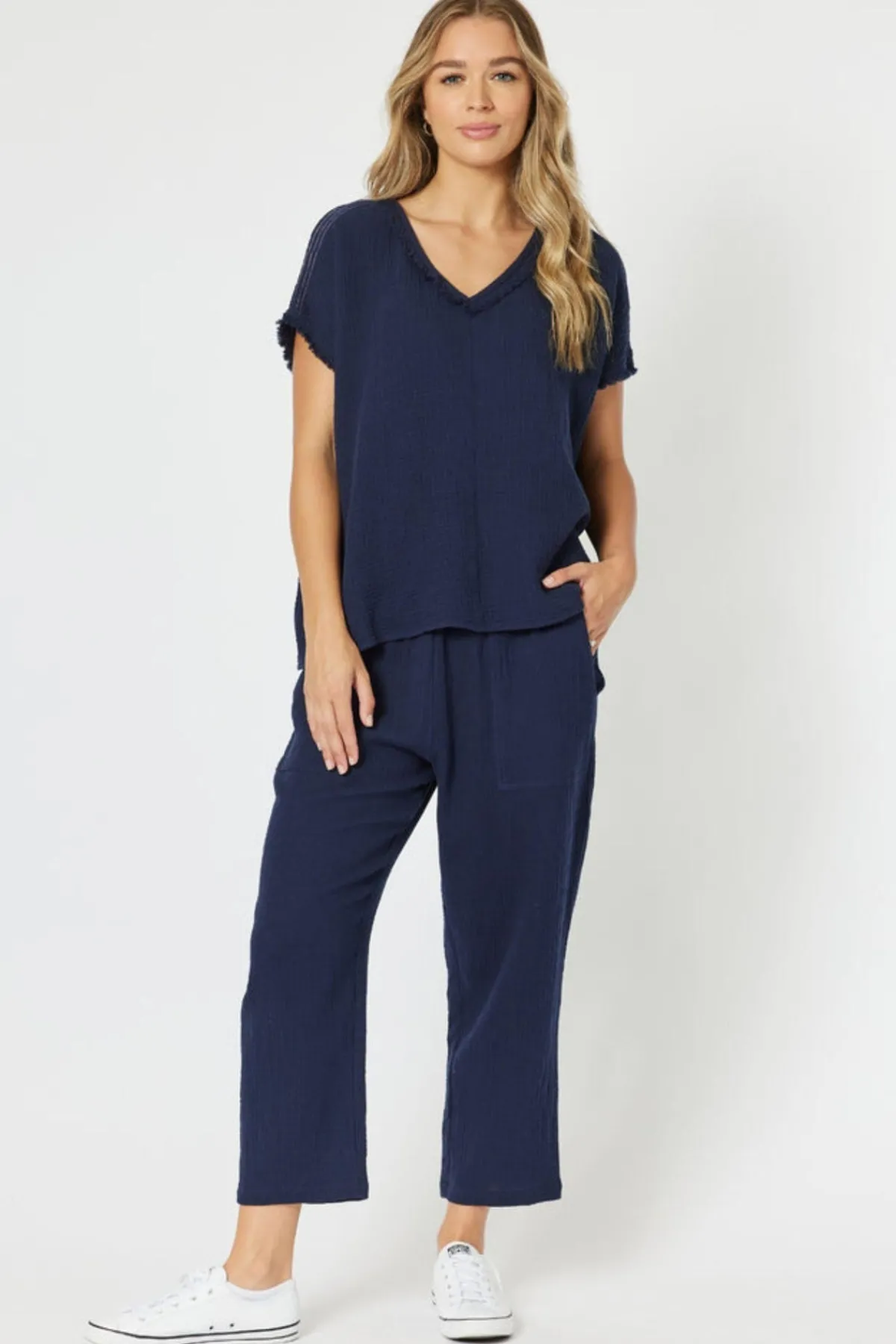 THREADZ Tops|Travel Essentials-HALEY BYRON TOP NAVY