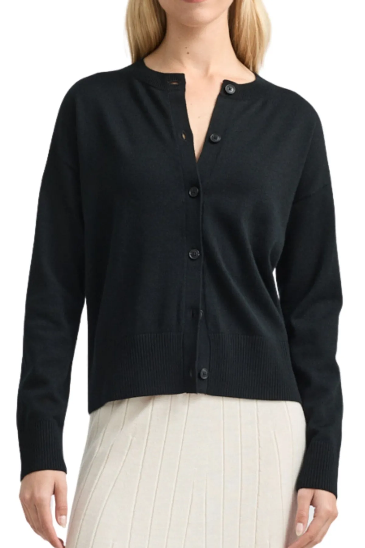 The Fine Knit Cardigan is a timeless wardrobe staple. Crafted in lightweight, superfine merino wool yarn, it has a relaxed silhouette with a dropped shoulder and buttons to the neck. It feels light to wear, lending itself to relaxed, transeasonal dressing.