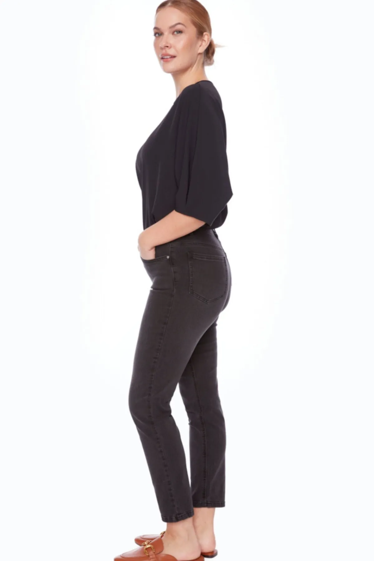 There’s nothing like the perfect pair of jeans. An iconic essential, it transcends age, trend, or season. And this pair has it all. The denim is super-soft with just the right amount of stretch, and the tummy-control waistband is comfortable, flattering, and easy to wear. A uniform wash and an ankle-skimming length keep the look sophisticated and polished, complete with a stitched faux fly, top button, and a classic 5-pocket design. With a versatility beyond compare, this wardrobe power-horse can easily be mixed and matched with other staples, putting it at the very top of our must-have list. Dress it up with a delicate silk tank and pointy pumps, or keep it casual with a vintage t-shirt and brightly coloured slides.