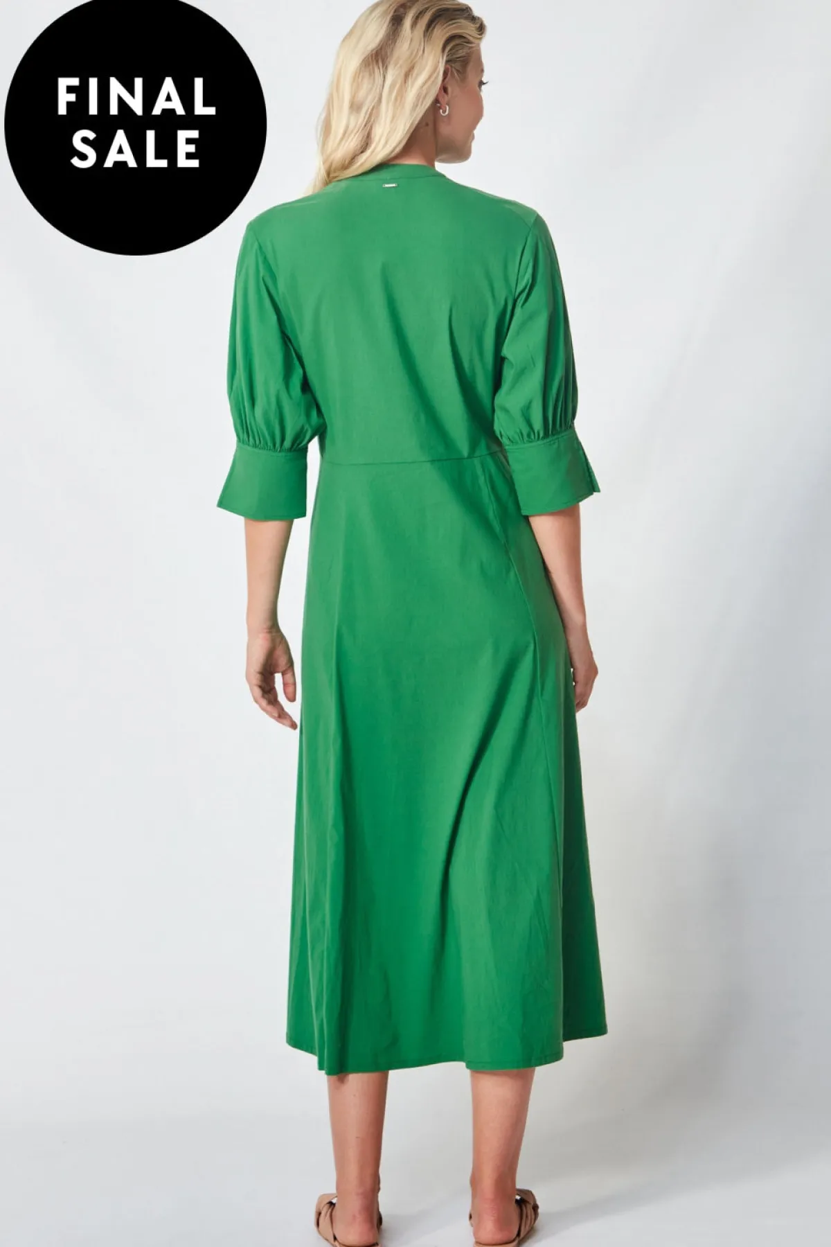 A button through shirt dress in Verge’s exclusive European stretch, cotton Acrobat fabric.The Garcia dress has a flat Mandarin collar and buttons through the front with self fabric covered buttons. The Garcia dress is waisted with A line panelled skirt.Set in sleeve falls just below the elbow and is gathered into a turn back cuff.The Garcia dress falls to mid calf.