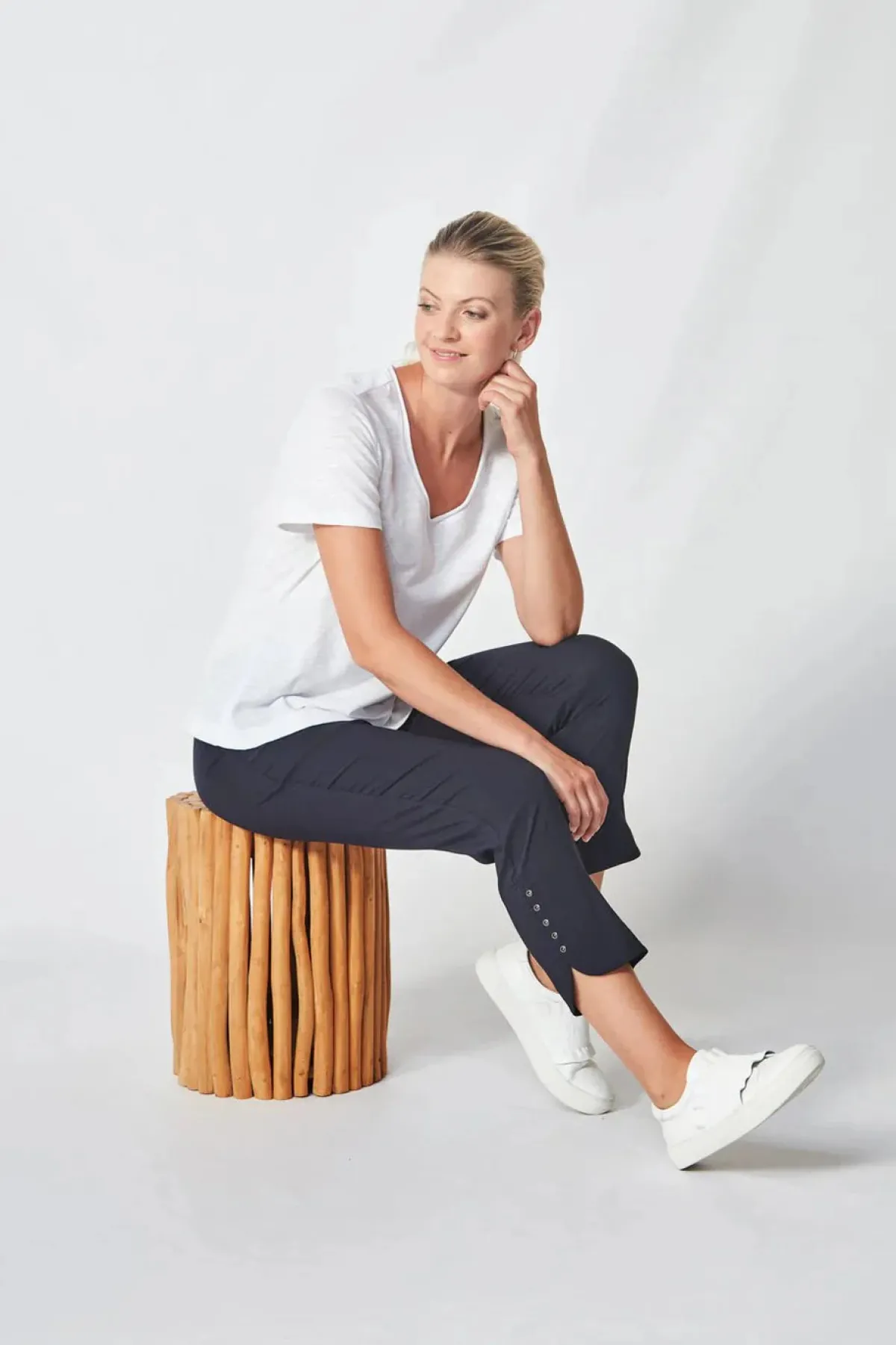 Crafted with Verge’s exclusive European stretch cotton Acrobat fabric, this pant offers unrivalled comfort and freedom of movement. Its slim leg profile is complemented by elegant rivet detailing, making it a must-have for any sophisticated wardrobe.