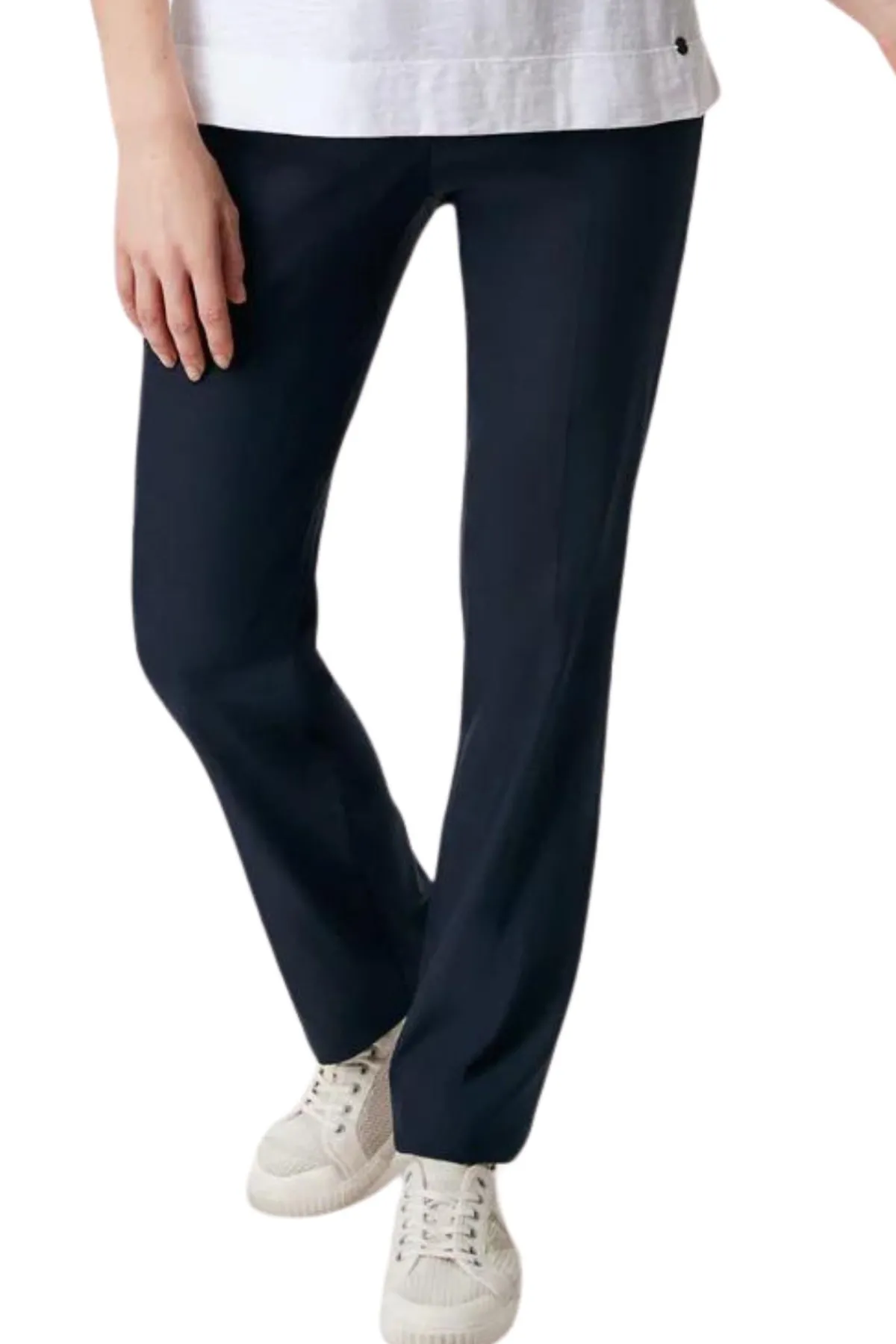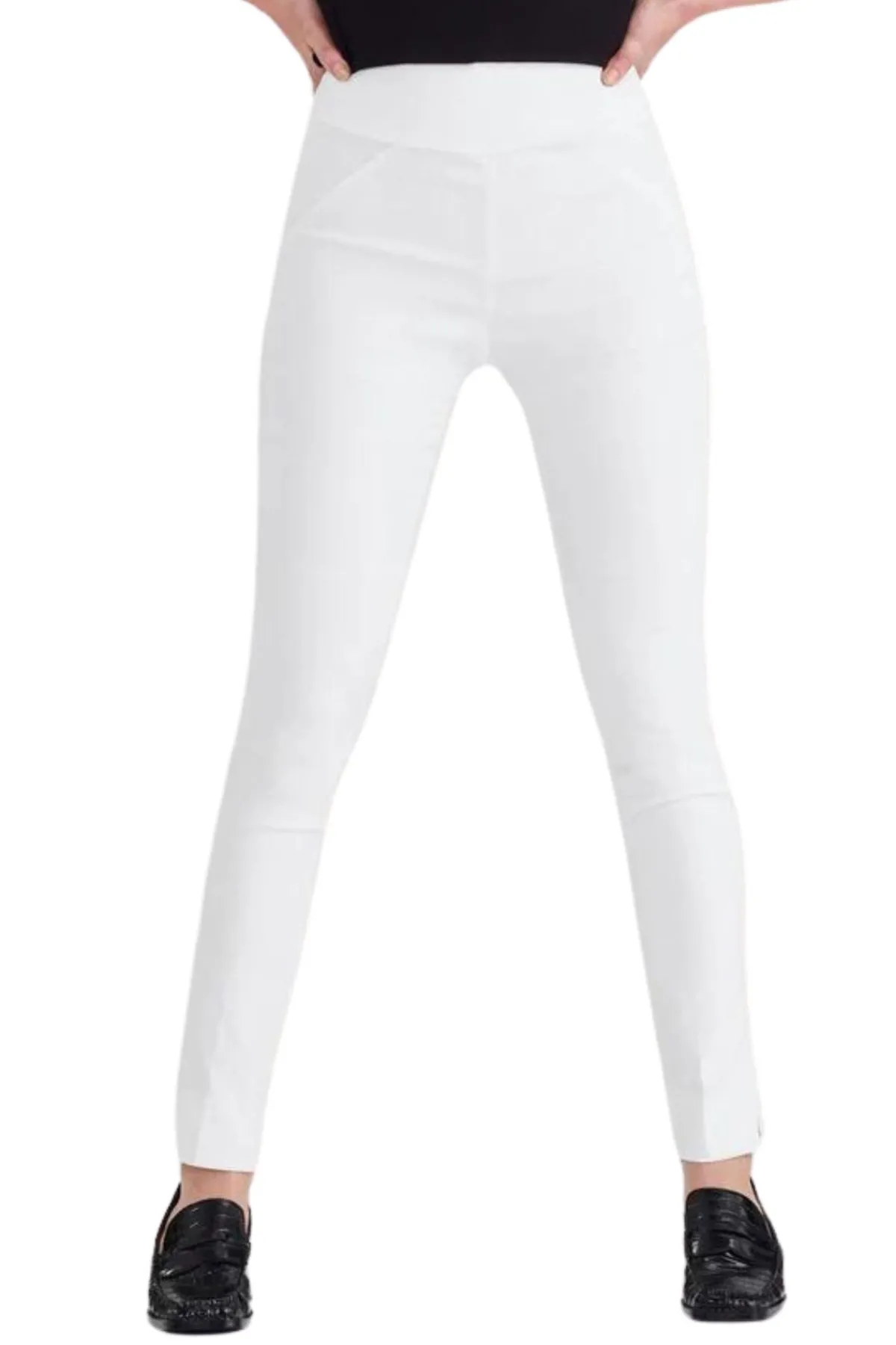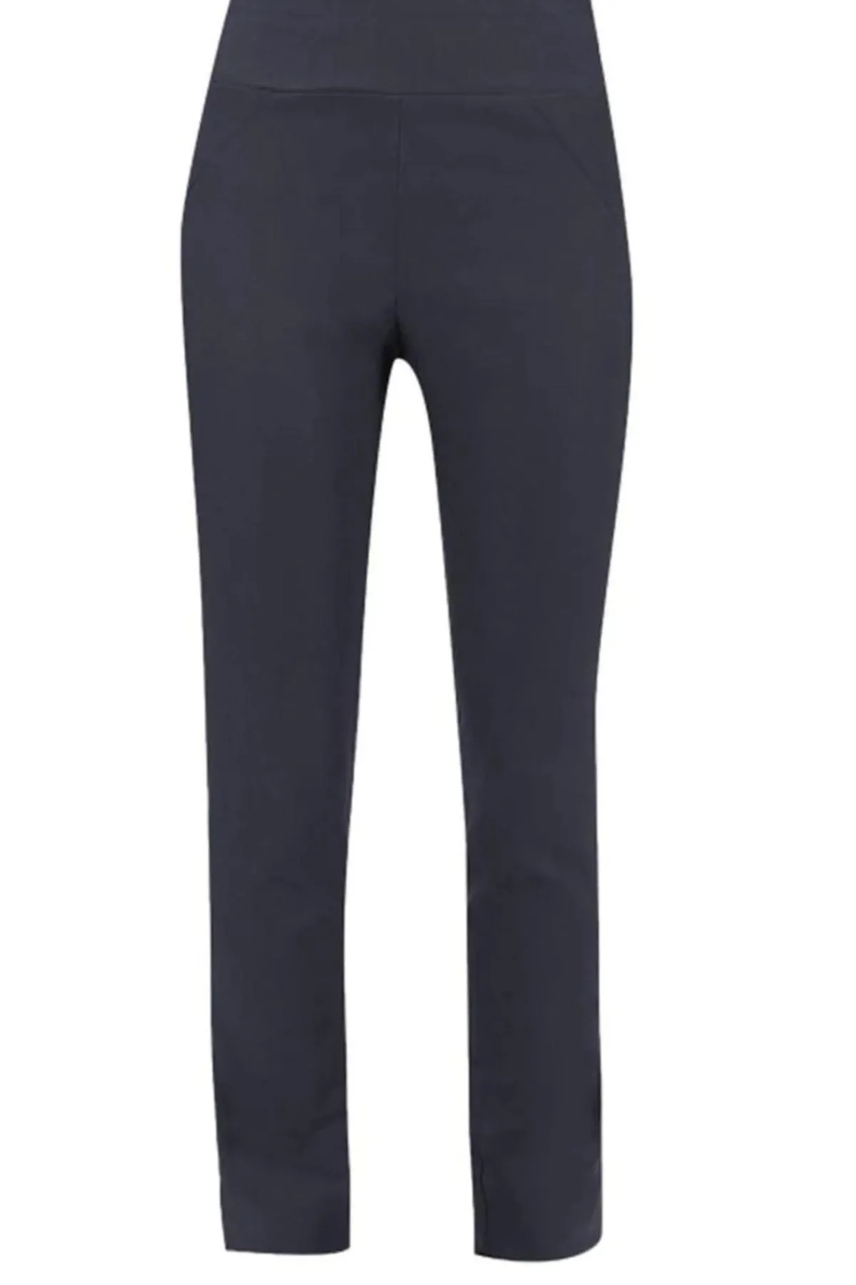 The Premier pant is a pull on pant designed for comfort. Super soft stretch fabric that moves with you. Full length slim leg pant with curvy fit. Deep basque waistband sits flat under any top.