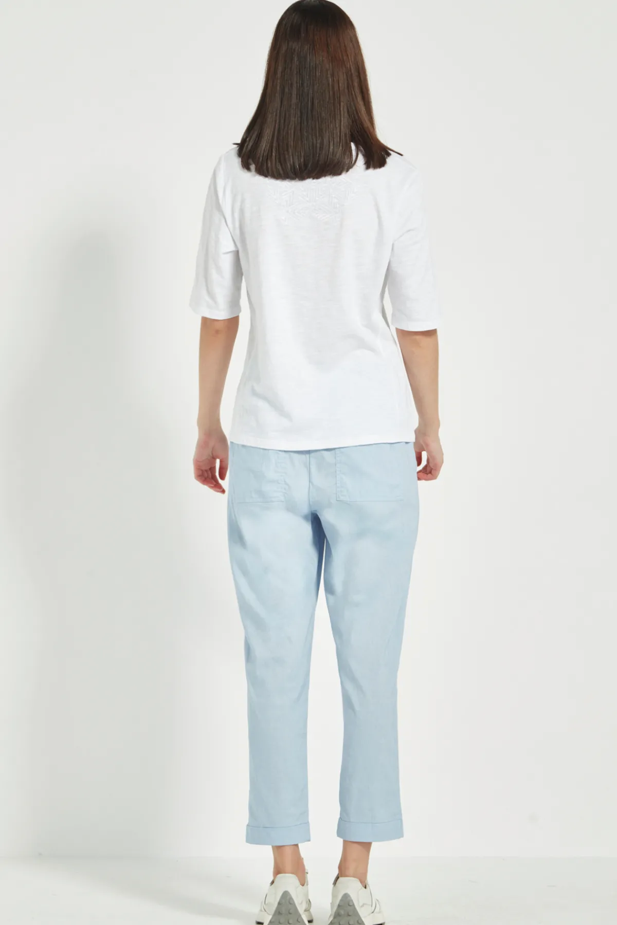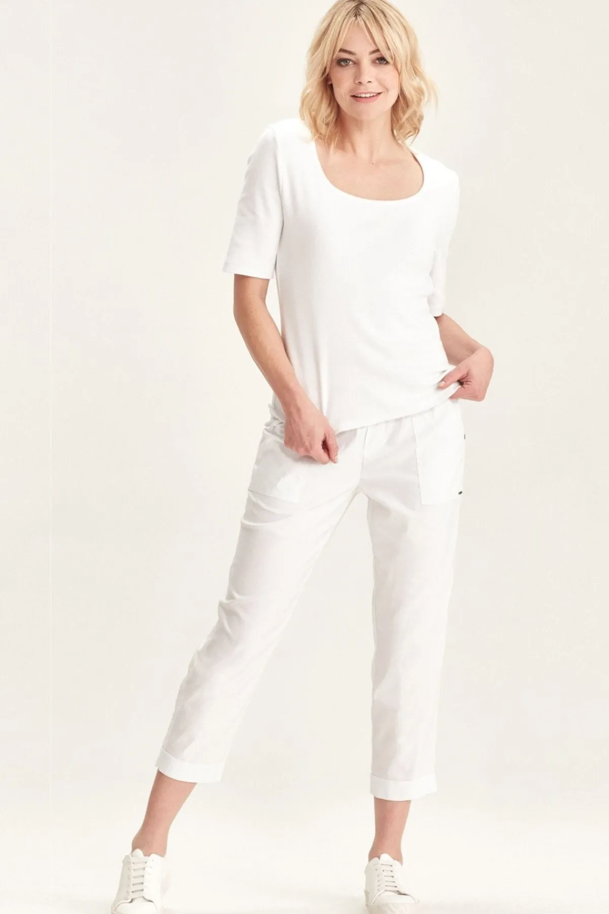 The Acrobat Essex 7/8 pant with relaxed leg and elasticated waist. The Essex pant features deep front pockets and cuff detail. Made in our exclusive European, lightweight stretch cotton Acrobat fabric for comfort, breathability and easy care.
