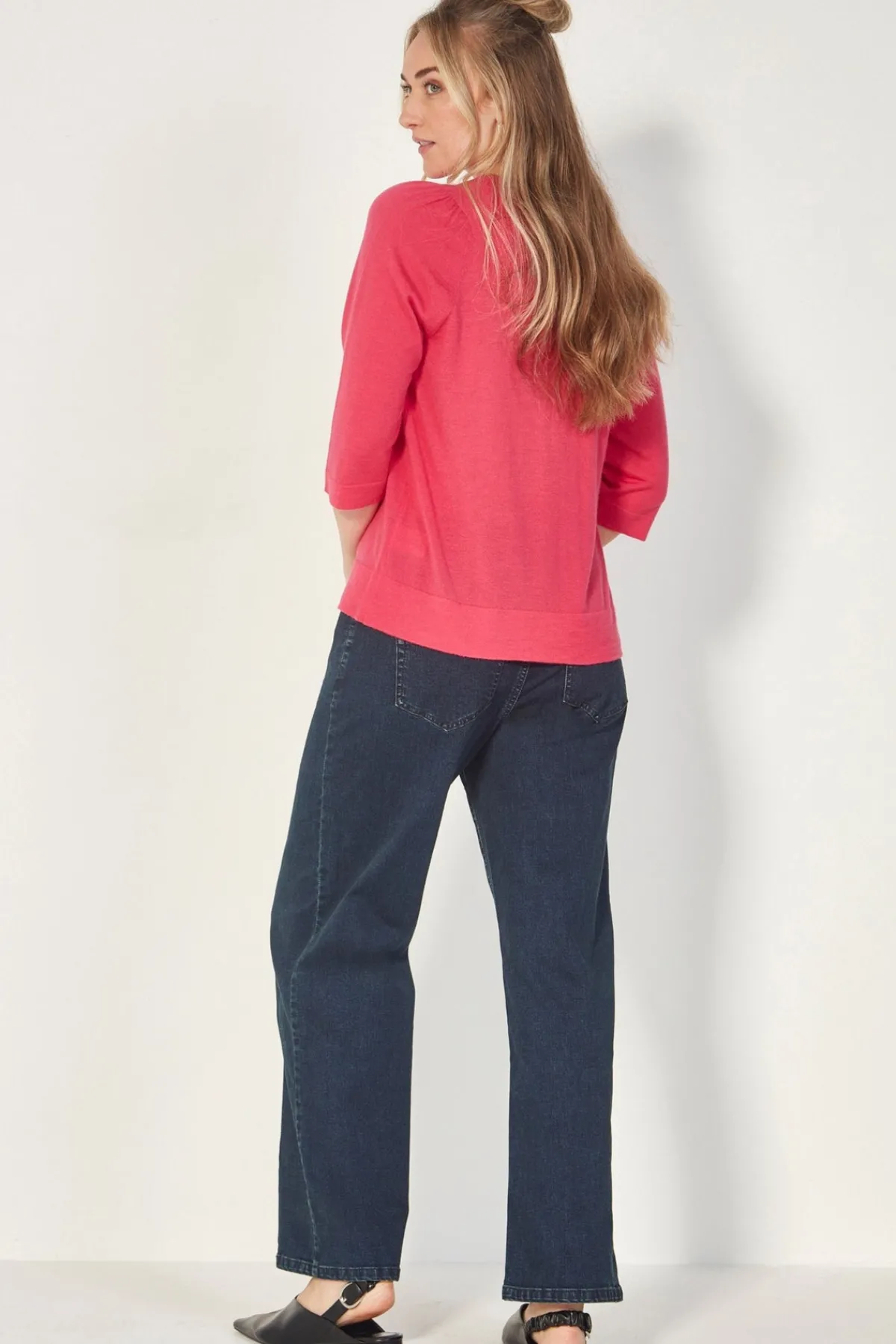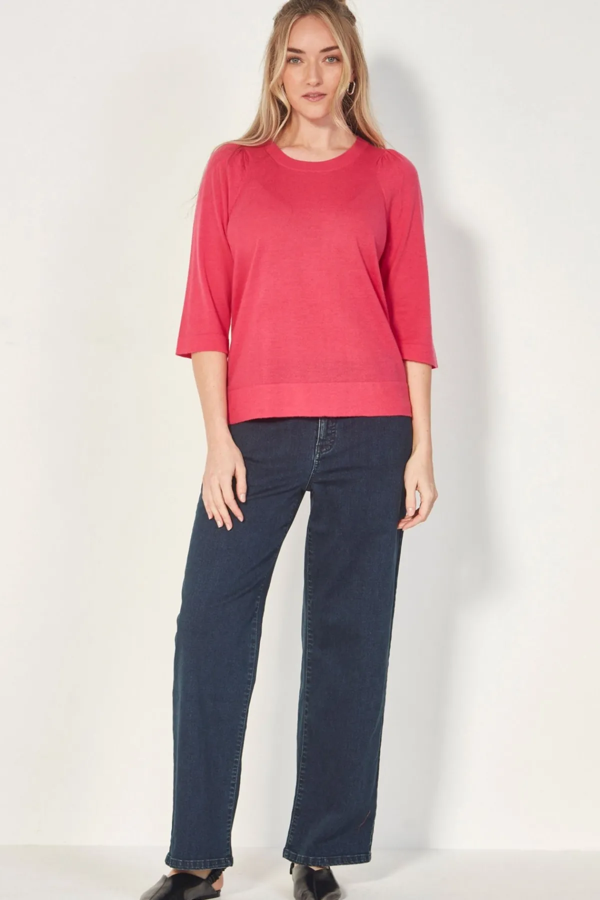 The Zoe top is crafted from premium extra fine 100% Merino wool and features a ribbed scoop crew neck and elbow length set in sleeves. Designed to sit at the hip, it offers both comfort and style. Experience the benefits of high quality wool with this versatile top. Extra fine 100% Merino. Scoop crew neck. Elbow length sleeve. Designed to sit at the hip.
