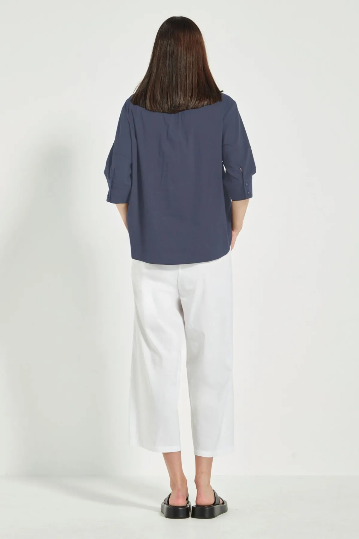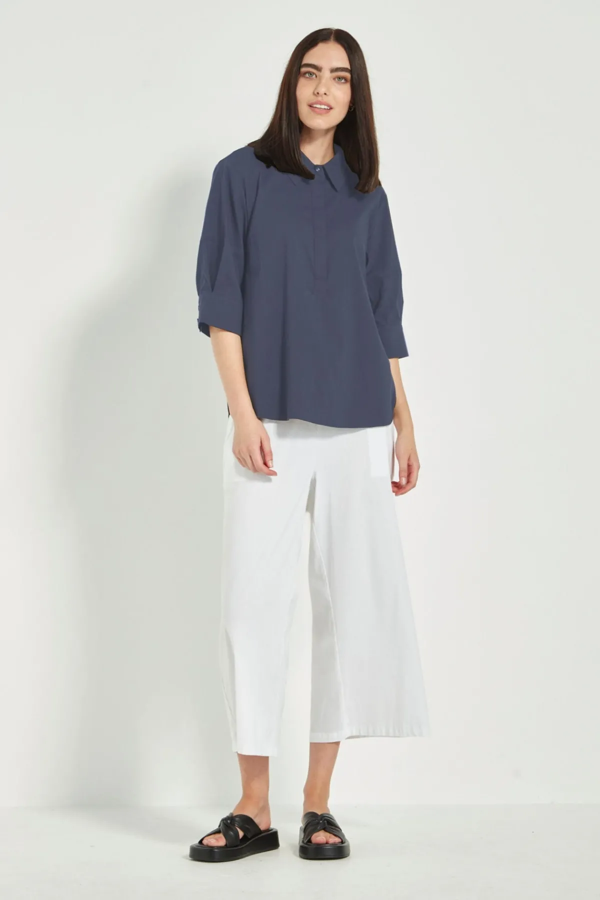 The Acrobat Nori Top is a fresh new style for the season, featuring a half placket with a collared neckline for a modern touch. The statement lantern sleeves finish just above the elbow, adding subtle volume and feminine detail to this easy, wearable silhouette.