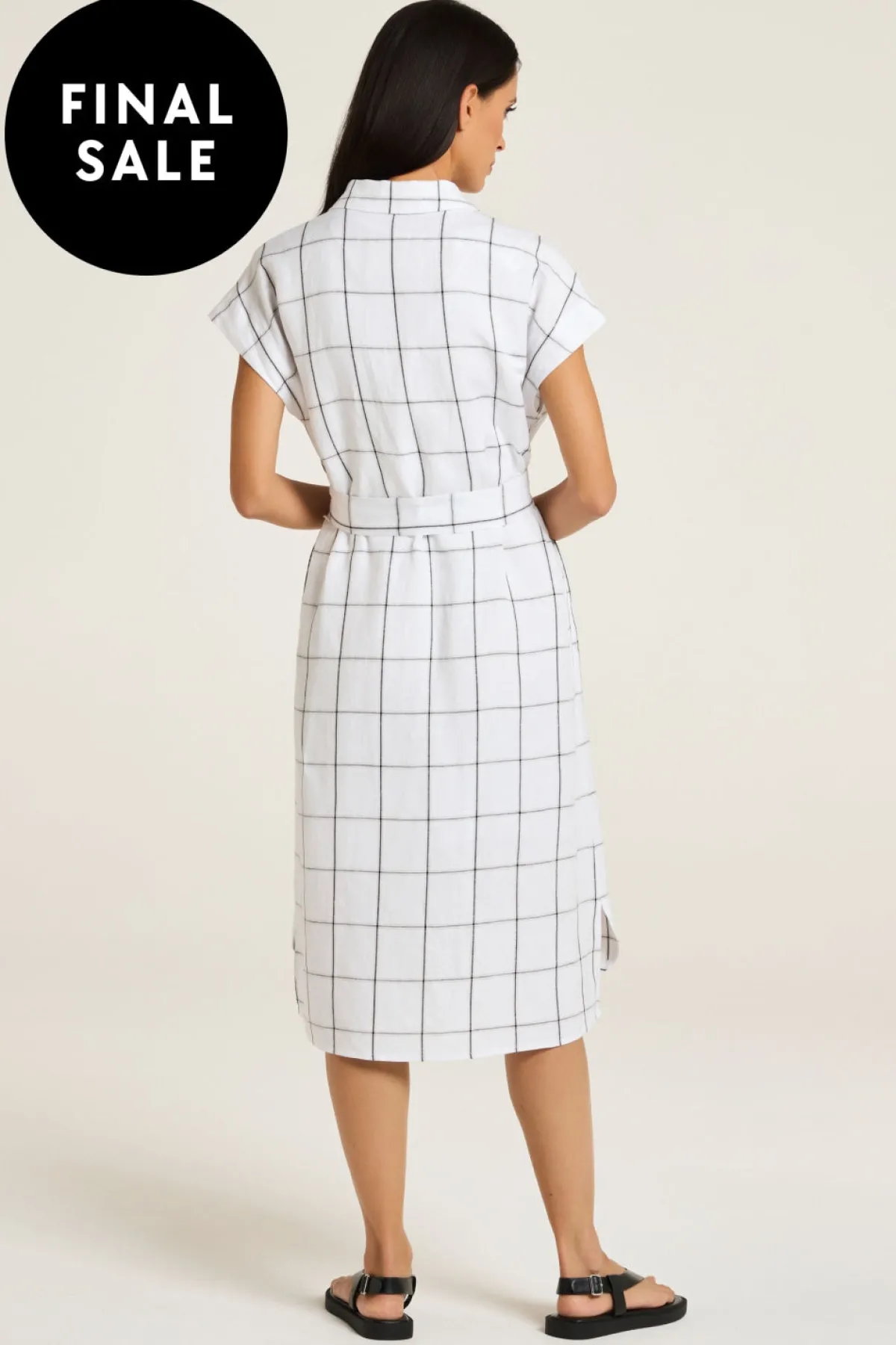 The Sentosa Dress epitomises minimal elegance with its exclusive yarn-dyed check pattern. Featuring a convertible collar and a concealed placket with a pleat, it includes extended sleeves and a waist tie for a relaxed fit. The knee-length design has a curved front hem with a split, while side pockets add practicality. Fully lined, it combines modern simplicity with timeless style, perfect for your summer wardrobe.