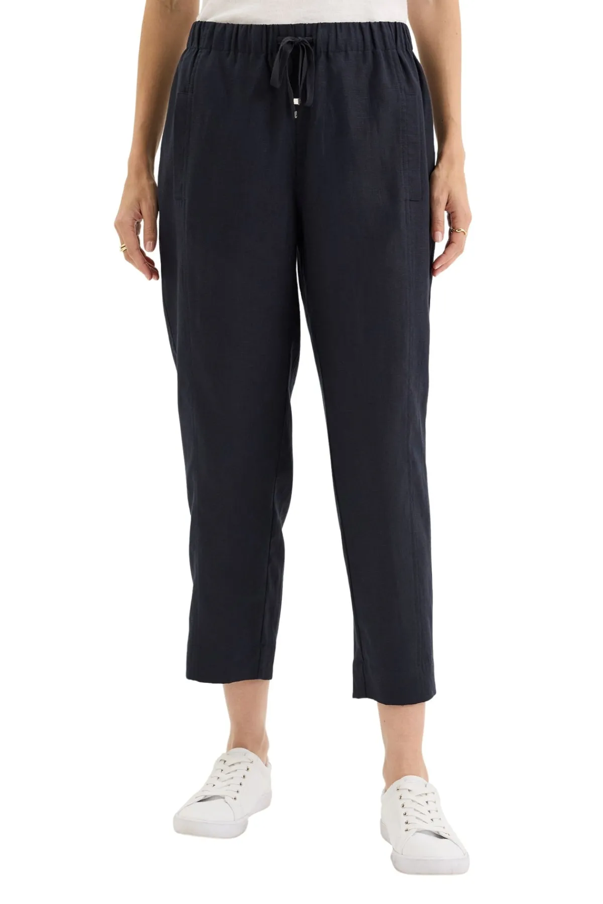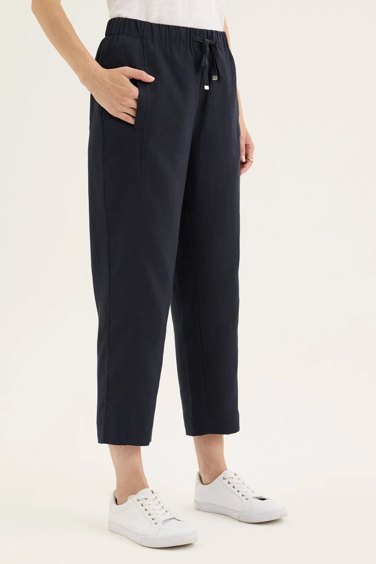 The Tirari Slim Pant is crafted from 100% premium European Flax linen and designed for effortless, everyday wear. Part of Yarra Trail’s signature Tirari range, it combines natural breathability with thoughtful design details. The pull-on waistband is fully elasticated and finished with a herringbone drawcord for a comfortable, adjustable fit. Front design panels and functional welt pockets add a clean, tailored feel, while back patch pockets offer practical finish. Cut in a slim silhouette with a 7/8 length, this is the kind of pant that balances structure and ease – perfect for warm-weather dressing, whether styled casually or polished with more from our linen range.