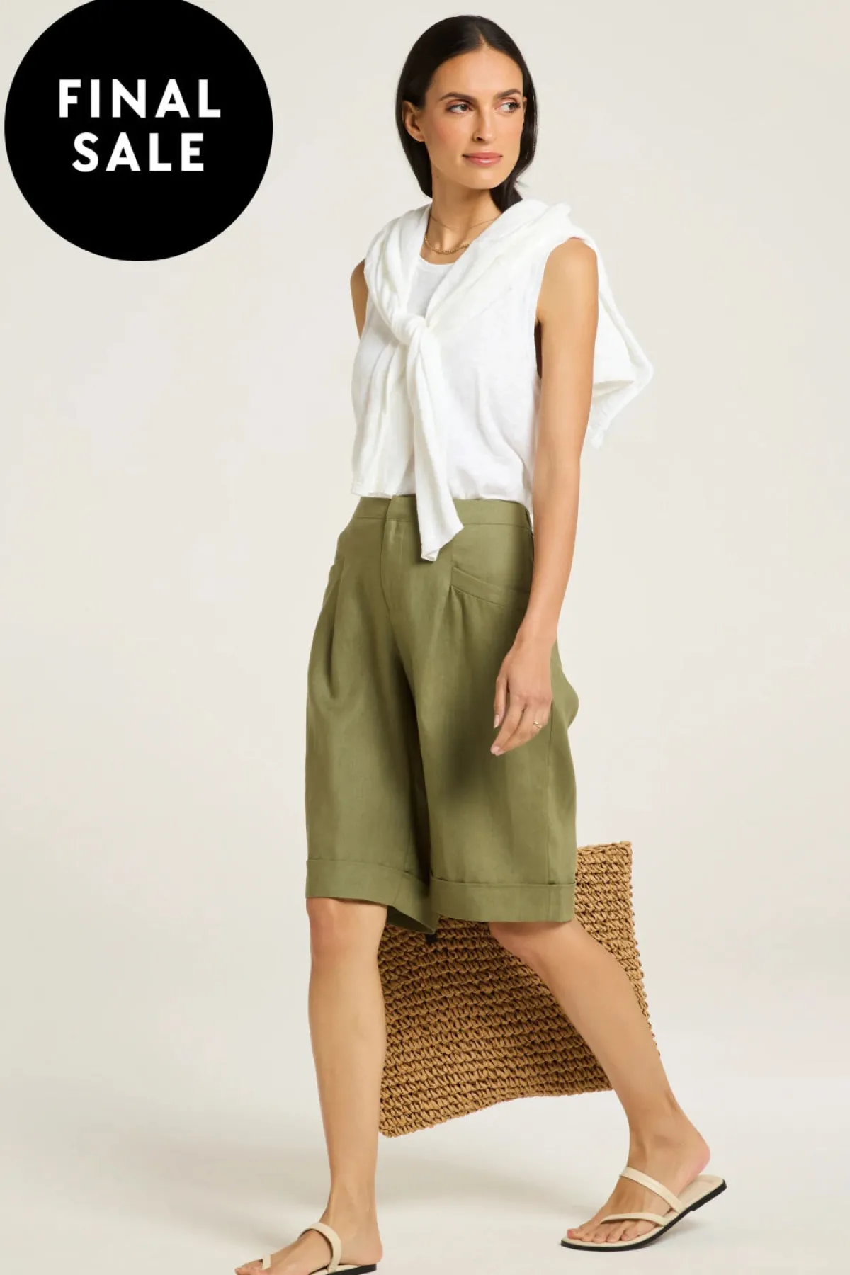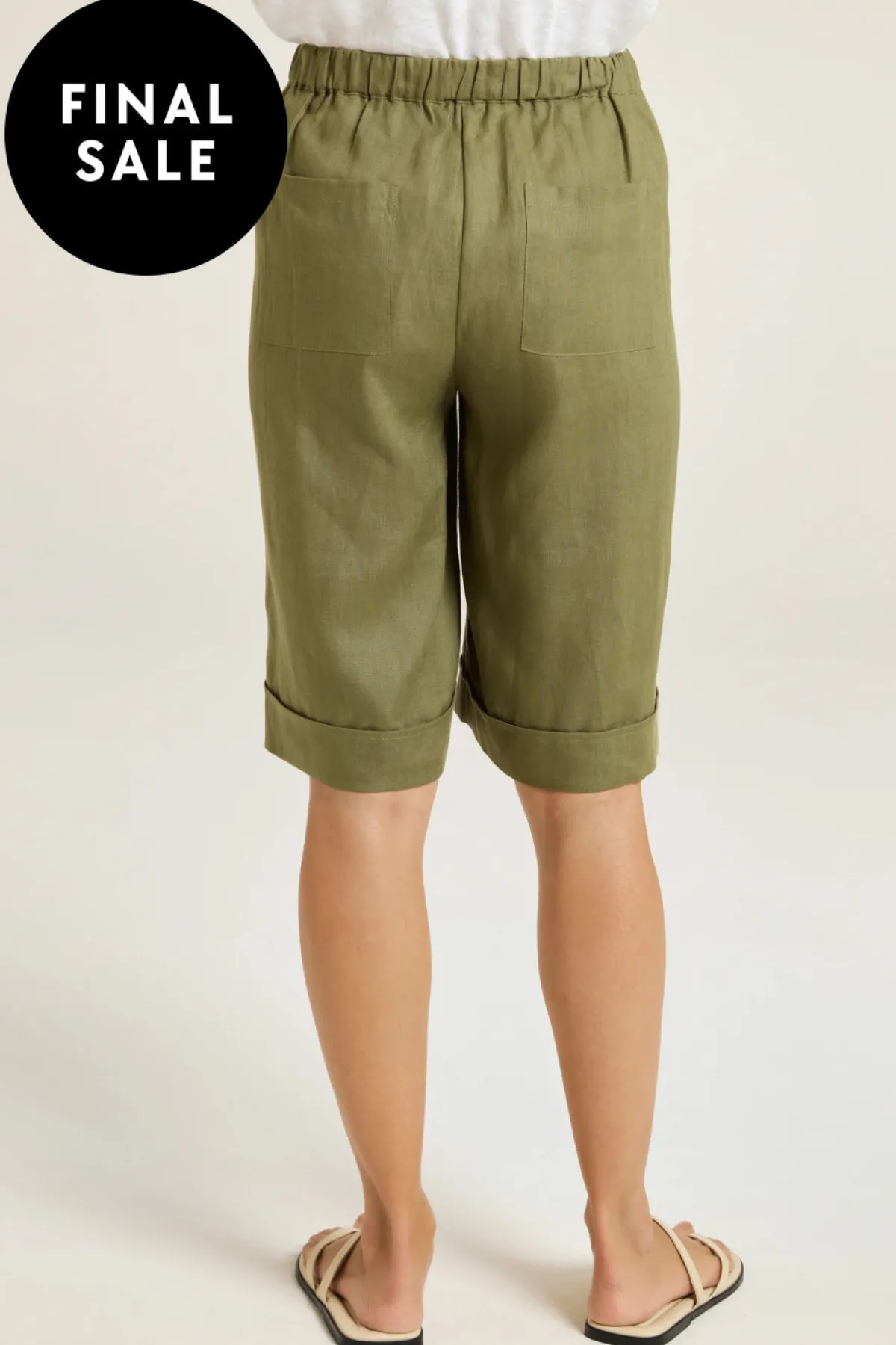 Elevate your summer style with our chic Bermuda shorts, crafted from 100% linen. Featuring single front pleats, angled side pockets, and a wide-band hem, they offer a contemporary look. Back patch pockets and a half-elasticated waistband add comfort and functionality.