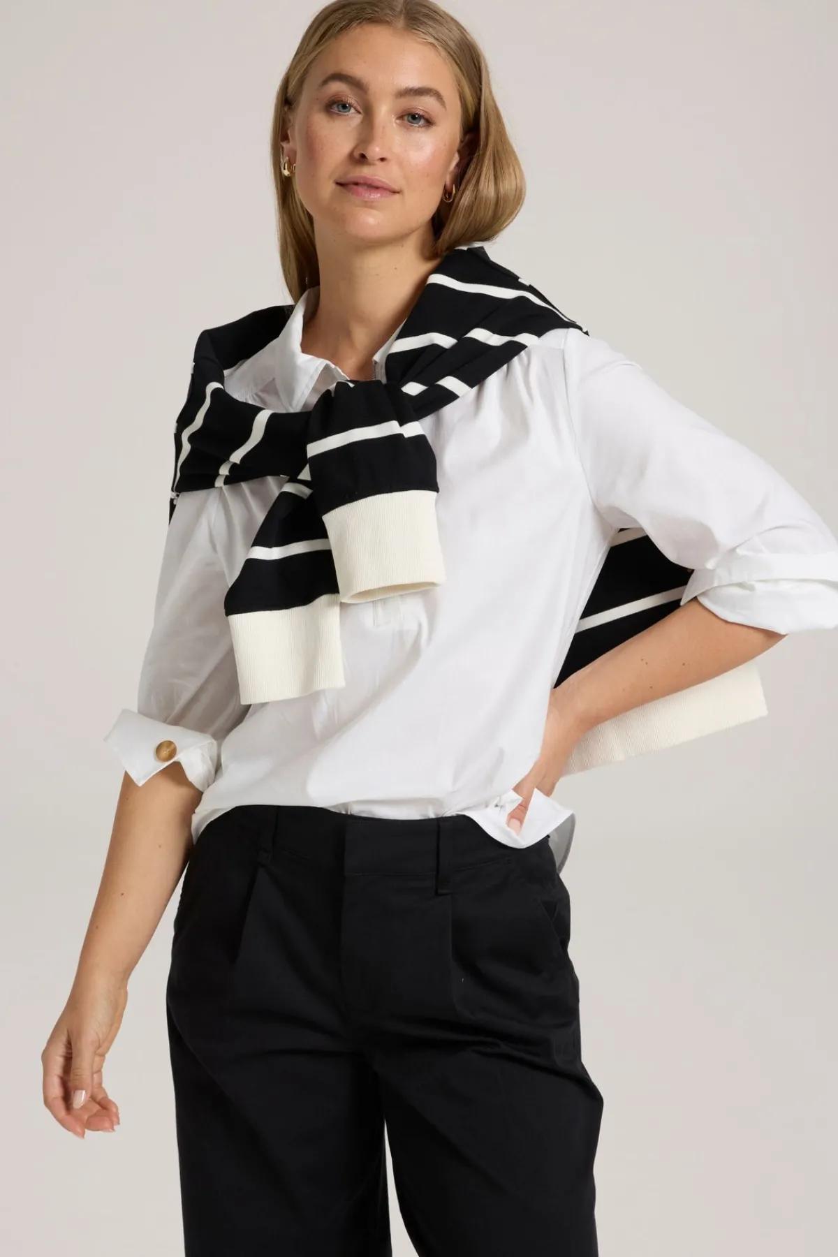 Indulge in the elegant and sophisticated style of Yarra Trail’s EARTHLY TOP. This must-have for autumn/winter features a 1/2 zip front and is crafted from stretch cotton, making it perfect for everyday wear. Elevate your wardrobe with this update to the classic white shirt.