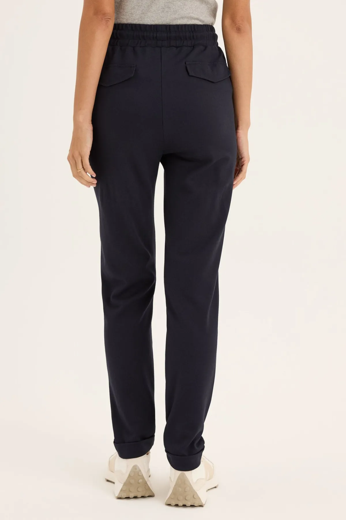 The Vine Jogger combines comfort and style with its elasticated waistband, offering a secure and flexible fit. It features functional front slant pockets for practical storage, along with mocked back flap pockets for added detail. The turned-up hem gives the jogger a trendy finish, while the easy fit silhouette flatters the figure. With a full-length cut, this jogger is perfect for creating a sleek, comfortable look that can easily transition from casual to more polished outfits.