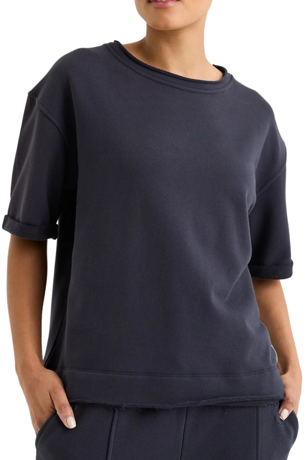 Crafted from 100% Cotton French terry twill, Granite Sweat offers comfort plus style to the casual sweat top. Double layered round neckline and hem, finish with raw edge, creating edgy and unique feature.