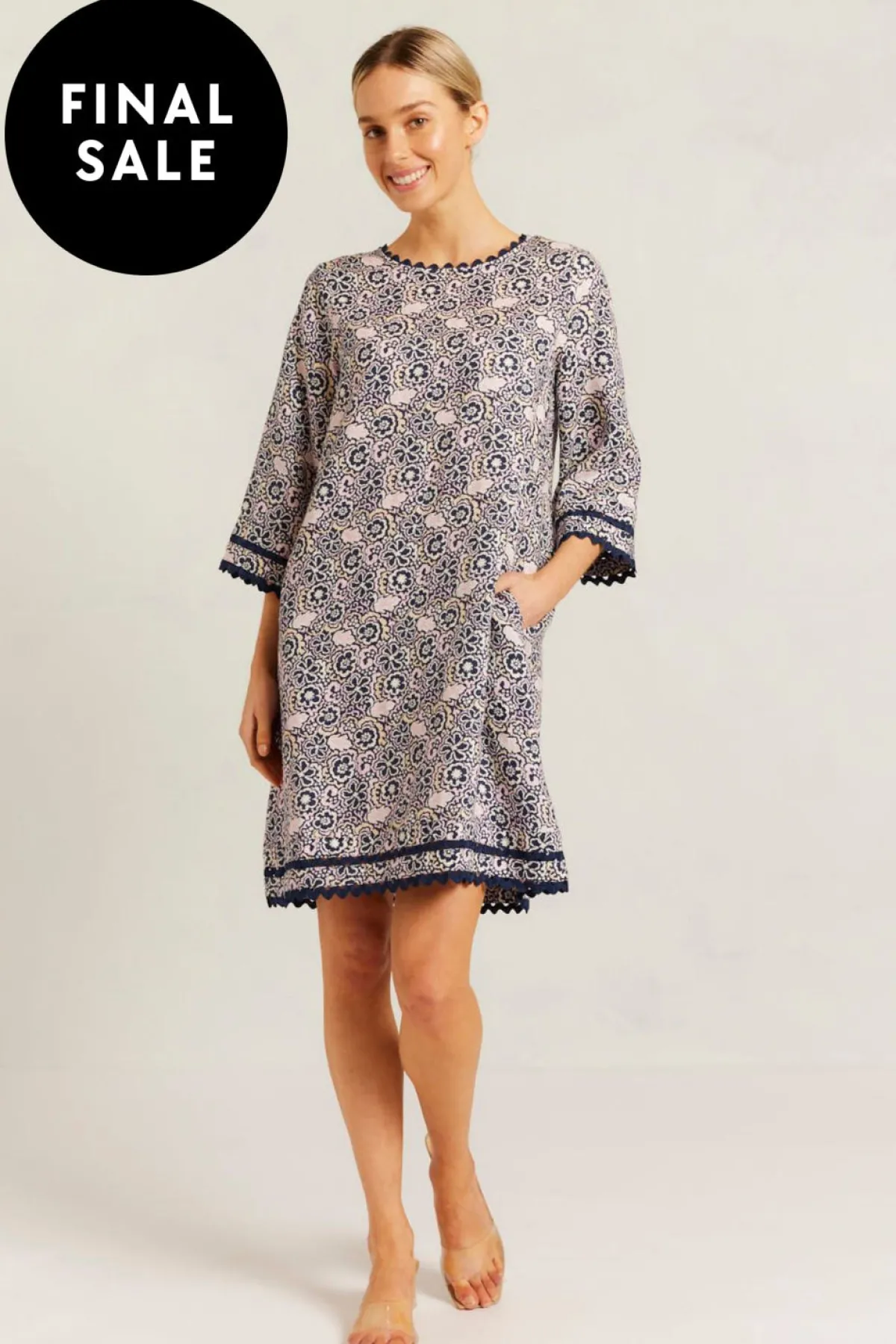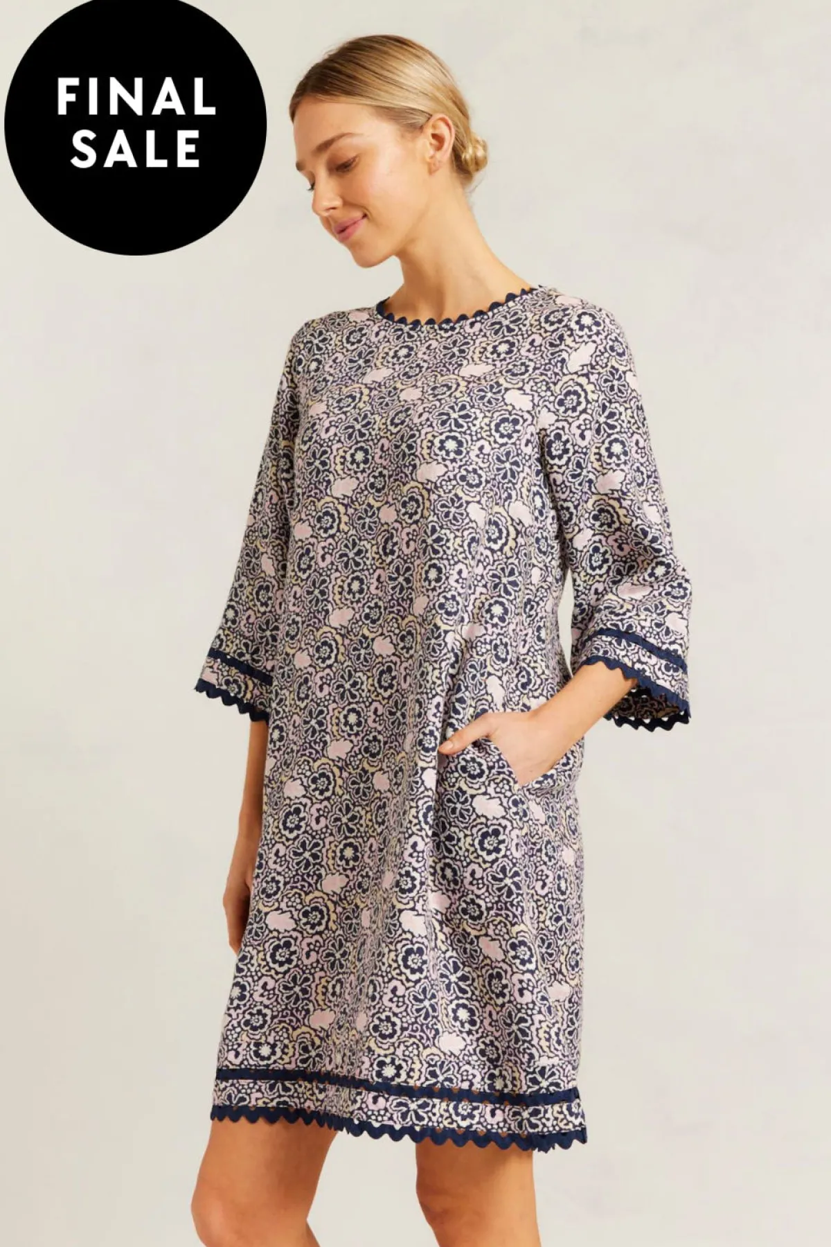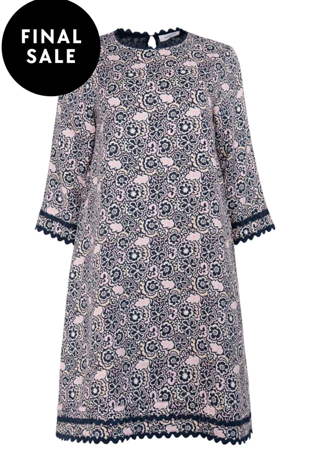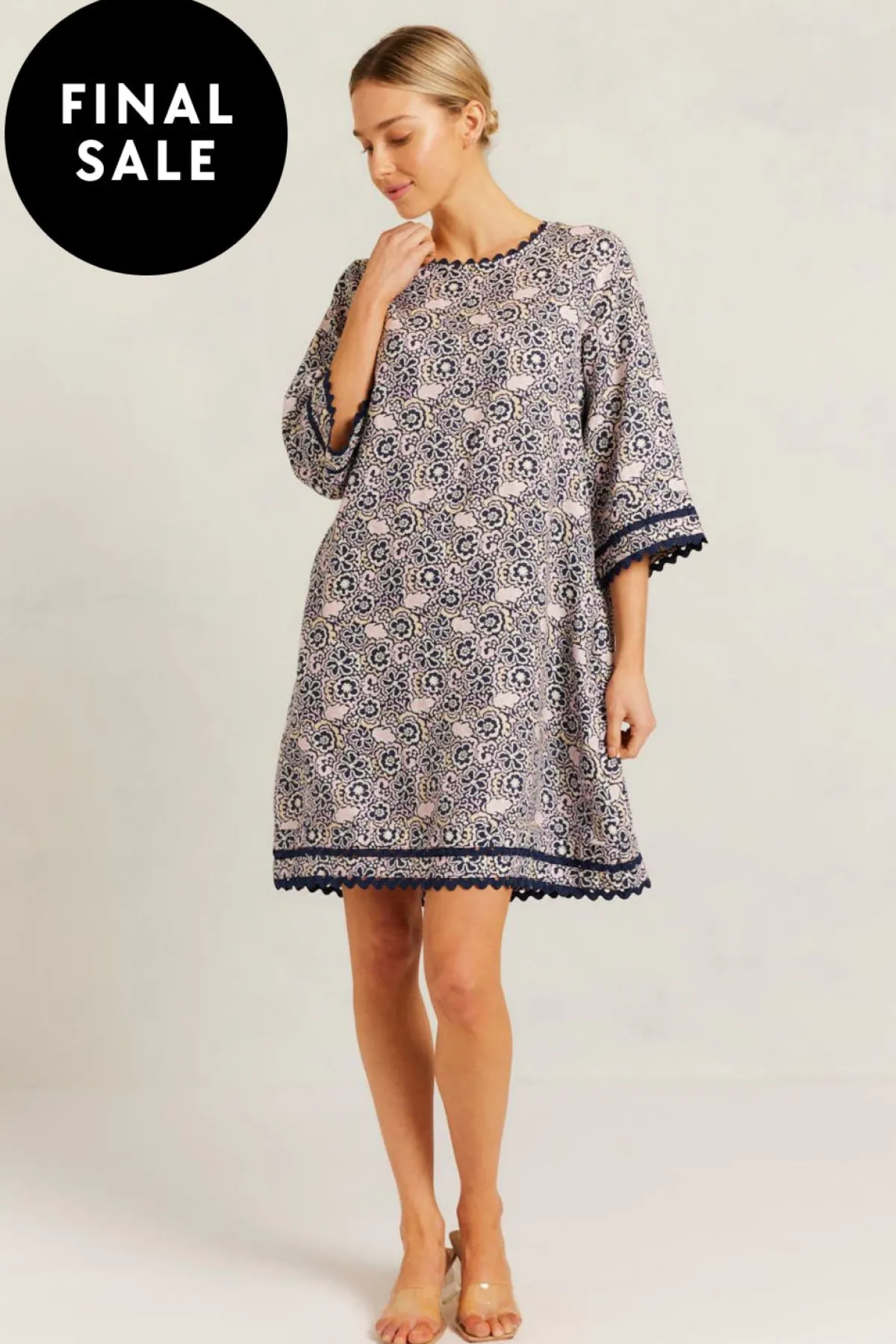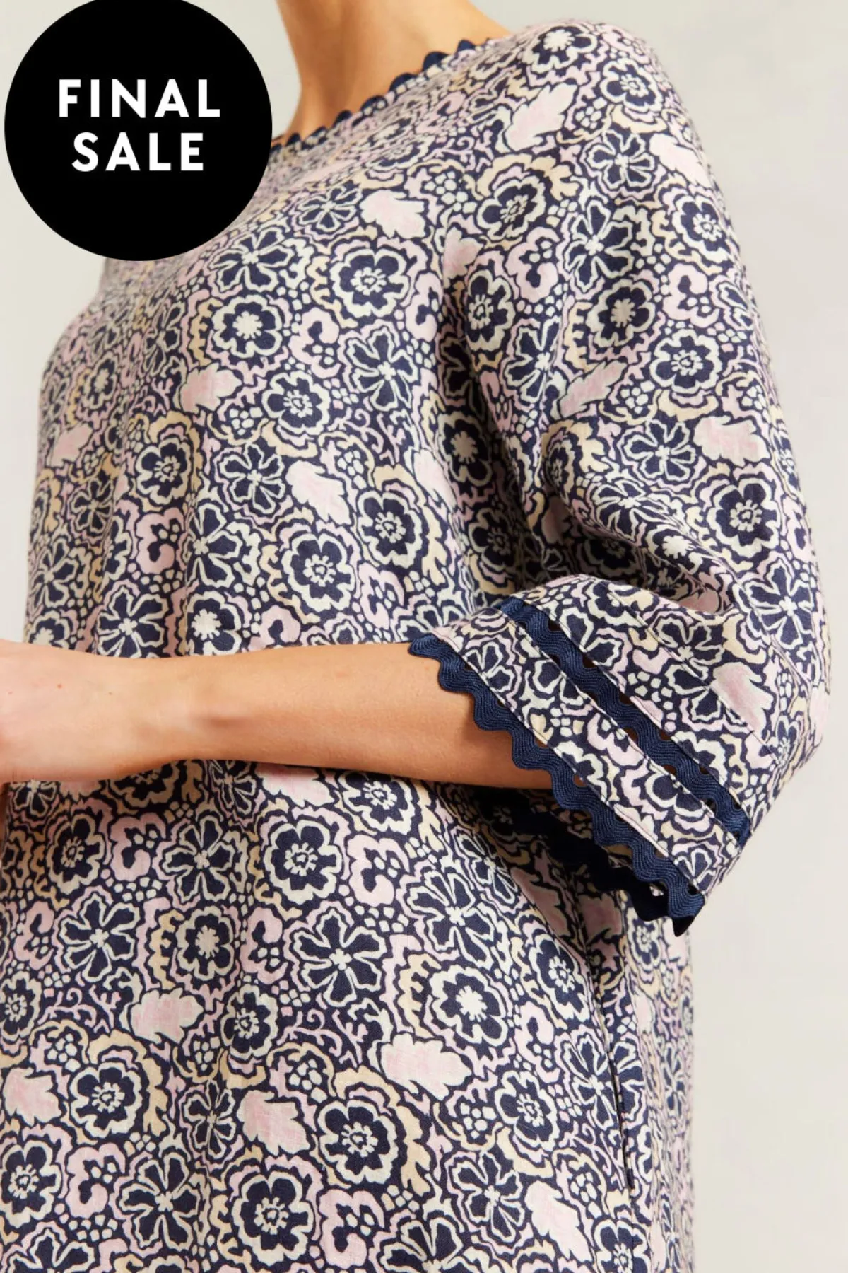 - Navy Raya Print with cuff and hem trim detailing