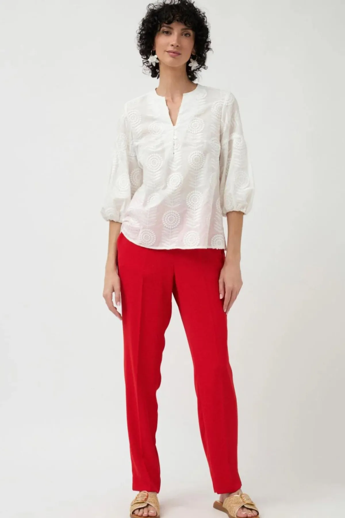 - Three-quarter length puffed sleeves with elasticated cuffs