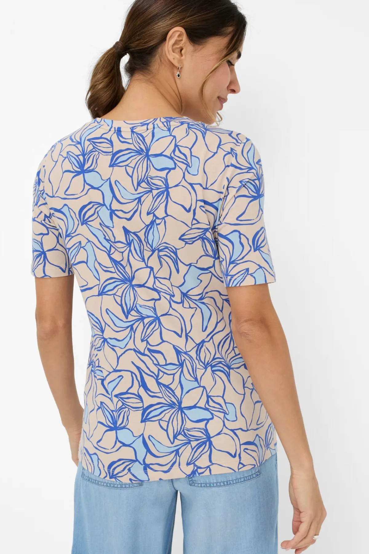 Presenting the refined Carina Tee—a stylish spring essential that radiates elegance. This women’s T-shirt features a gently tailored fit that enhances your shape, complemented by a charming floral print for a feminine finish.