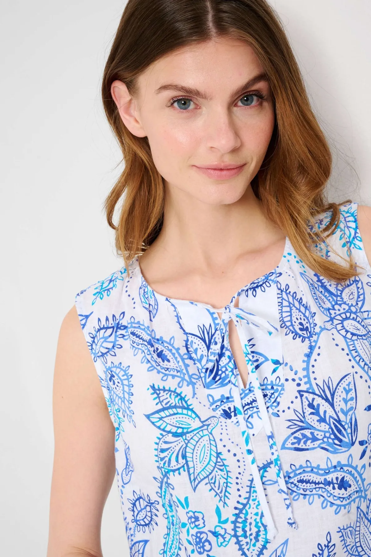 Stay cool and stylish this summer with the Vita Top! Made from high-quality linen, it offers both breathability and moisture regulation. The trendy V-neck features delicate gathers, while the relaxed fit and feminine gatherings ensure comfort. With a beautiful floral print, this blouse is a must-have for warm days and nights.