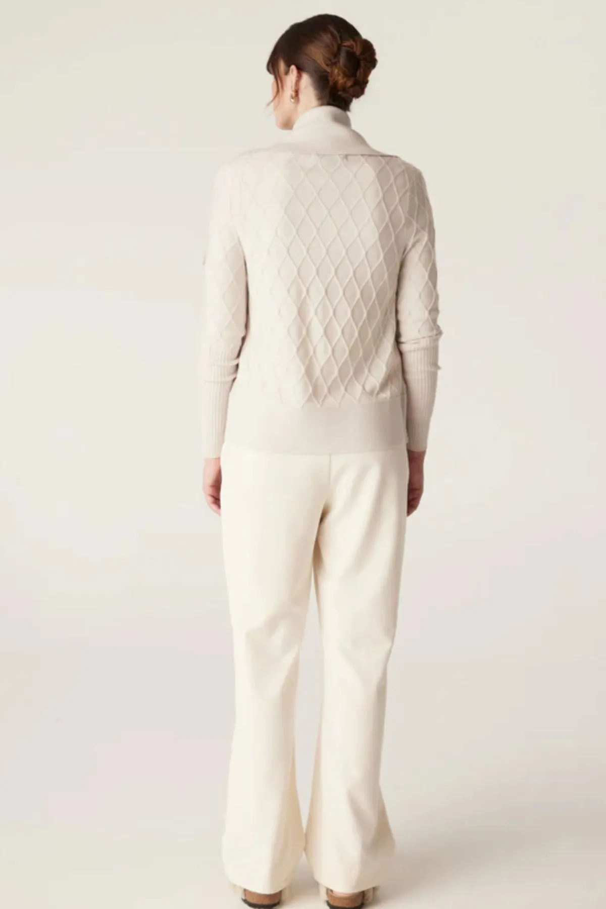 - Diamond cable stitch detail throughout