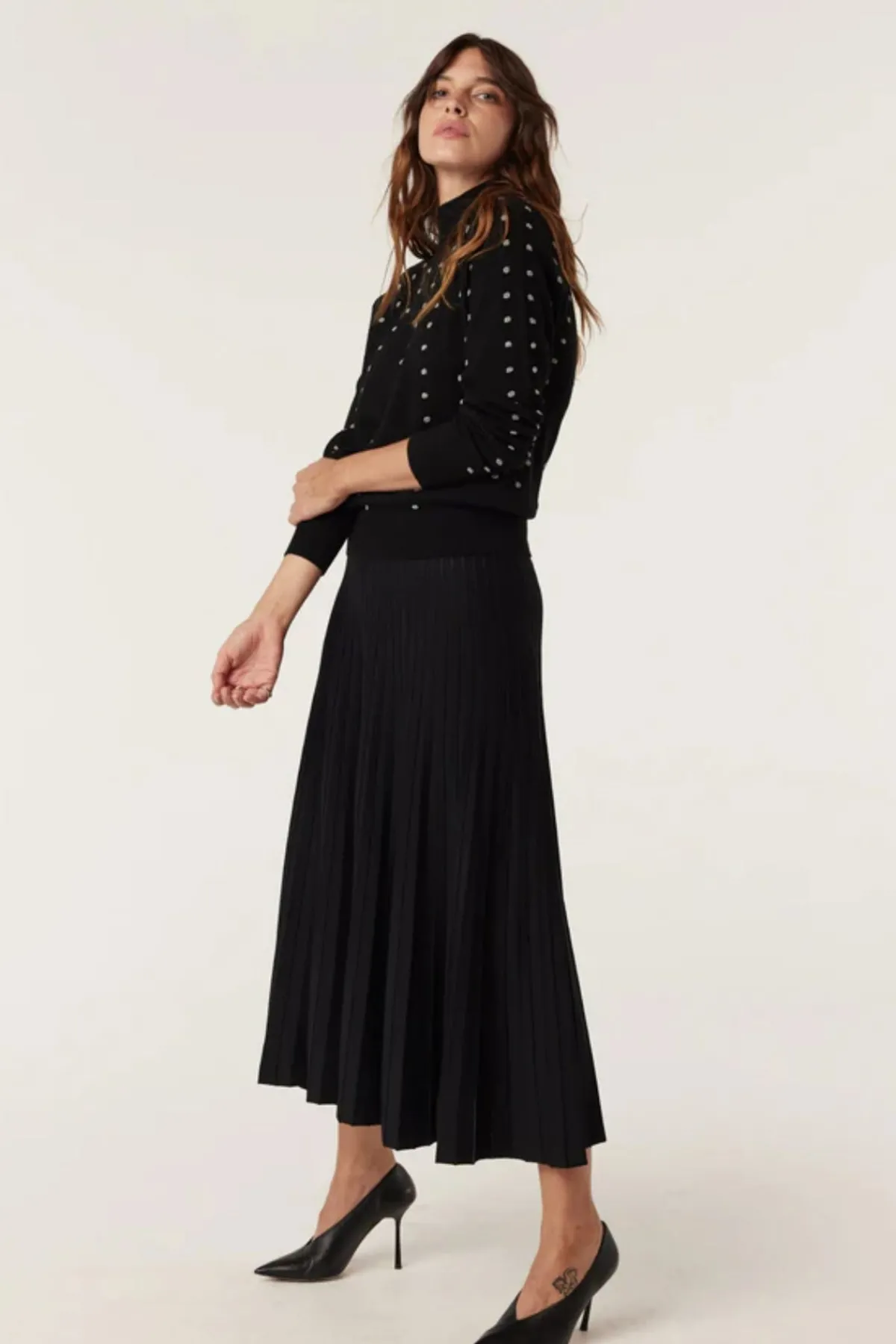 - Contrast lurex bobble feature throughout body and sleeves