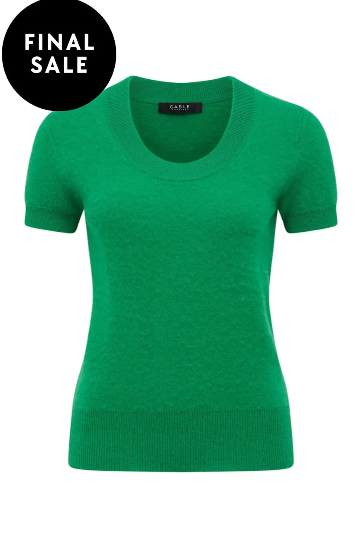 CABLE Tops-BRUSHED PURE CASHMERE TEE JADE