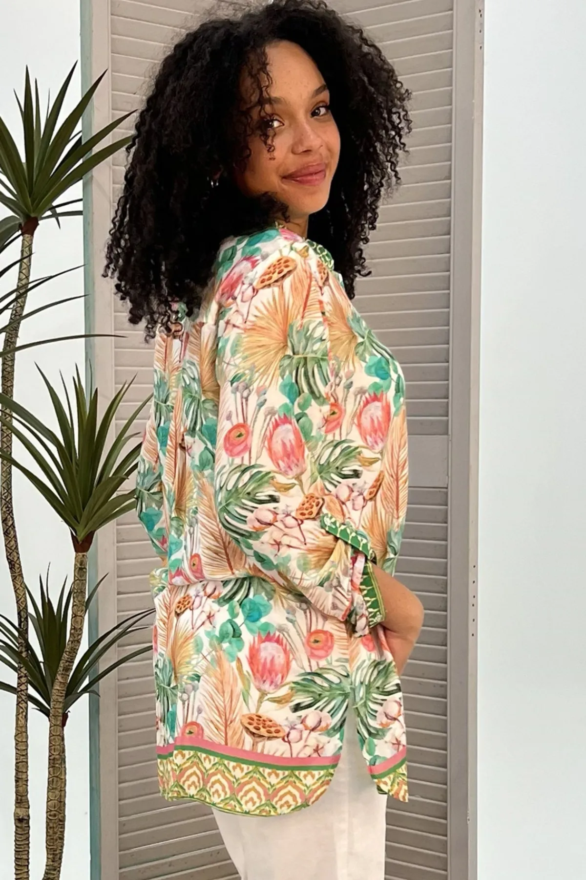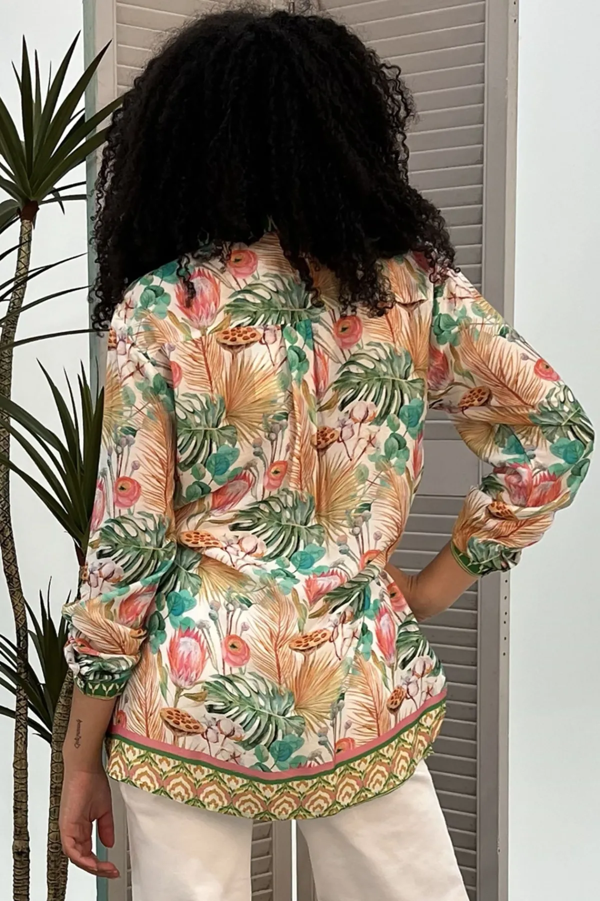 Elevate your summer style with the MONA SHIRT. This button-up shirt features a delicate floral and botanical print on lightweight silk, making it the perfect breezy layering piece for sunny days. Its soft, airy fabric keeps you cool while adding a touch of playful charm to any outfit. Ideal for effortless warmth and style on those balmy afternoons!