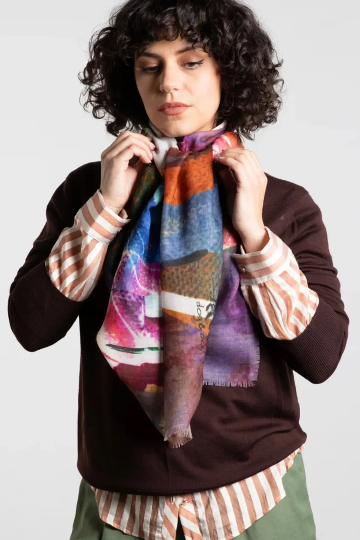 Fine merino wool scarf in original design by Dog and Boy. Oversized floral print.