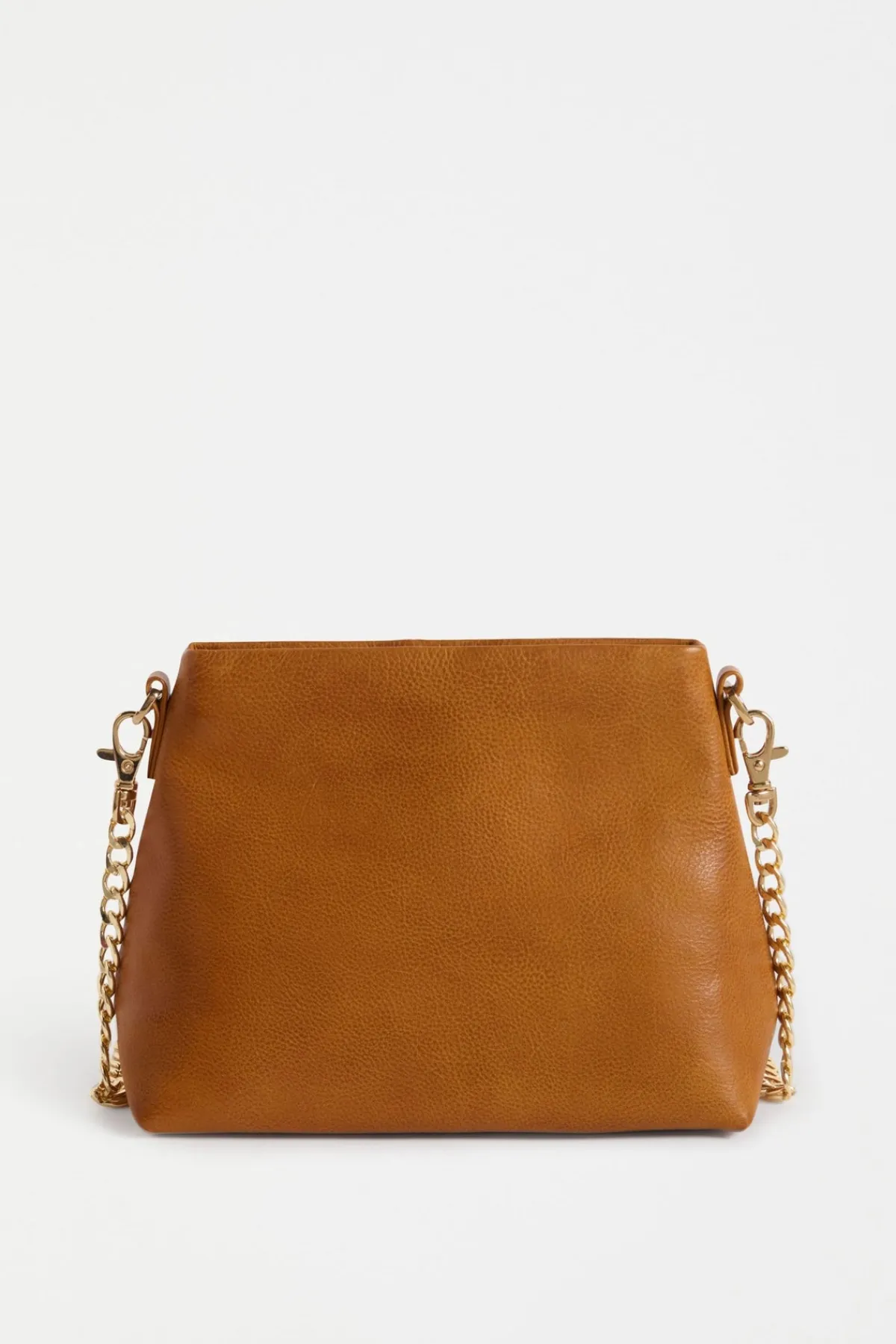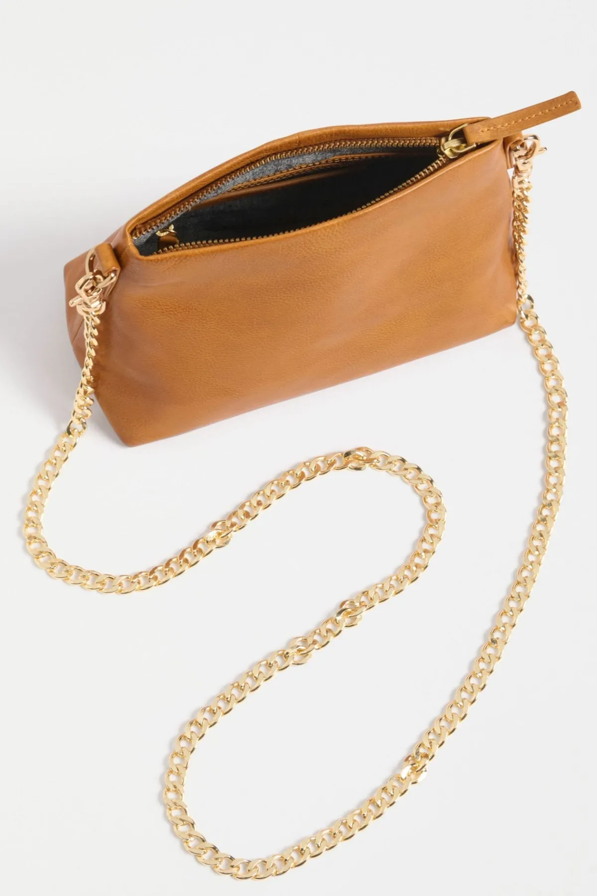 - Detachable polished chain strap — wear crossbody or carry as a clutch