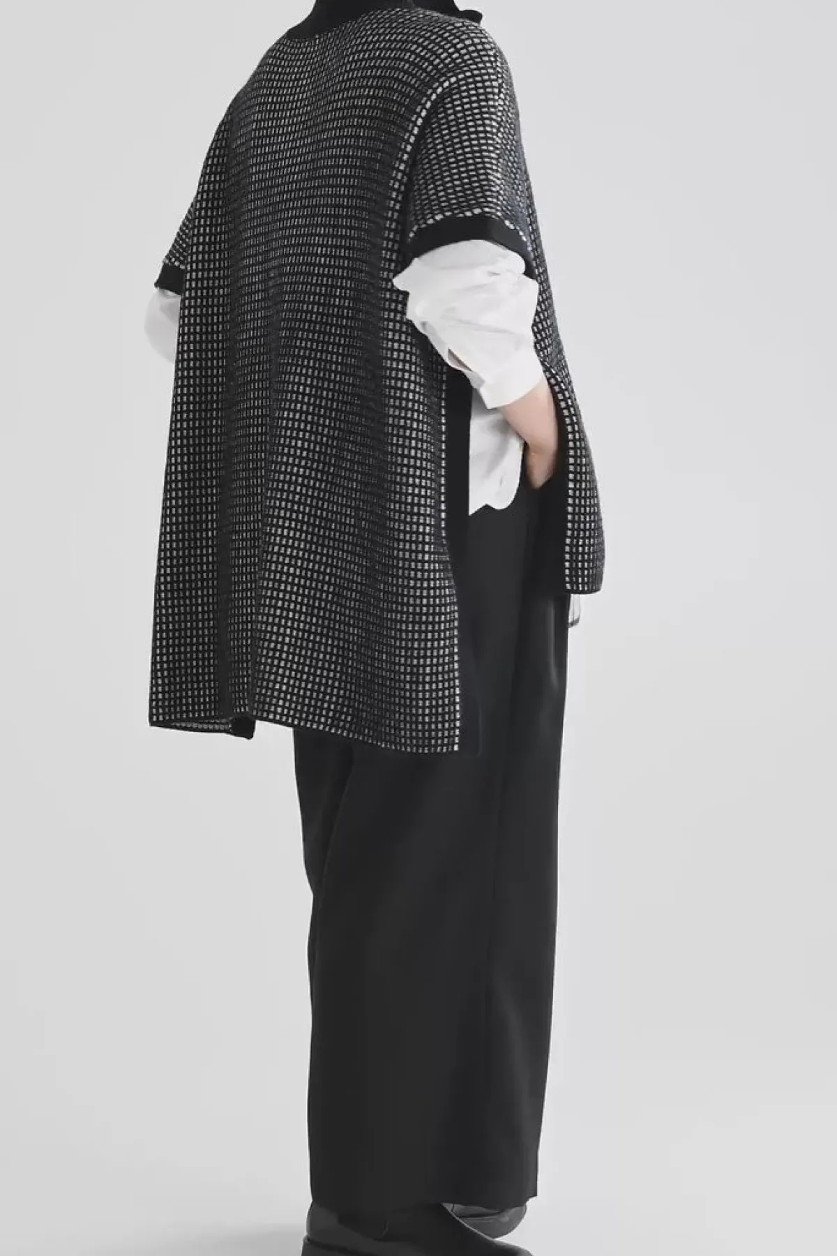 Easy yet unmistakable. An easy to layer piece that instantly pulls together a look. The Cheil Poncho is crafted from a wool blend in a monochromatic grid stitch, offering warmth and texture without bulk. A zip funnel neck adds versatility, while functional side buttons define the armholes for easy movement. From denim to dresses, it’s the layering piece that’s ready to take you wherever the day leads.
