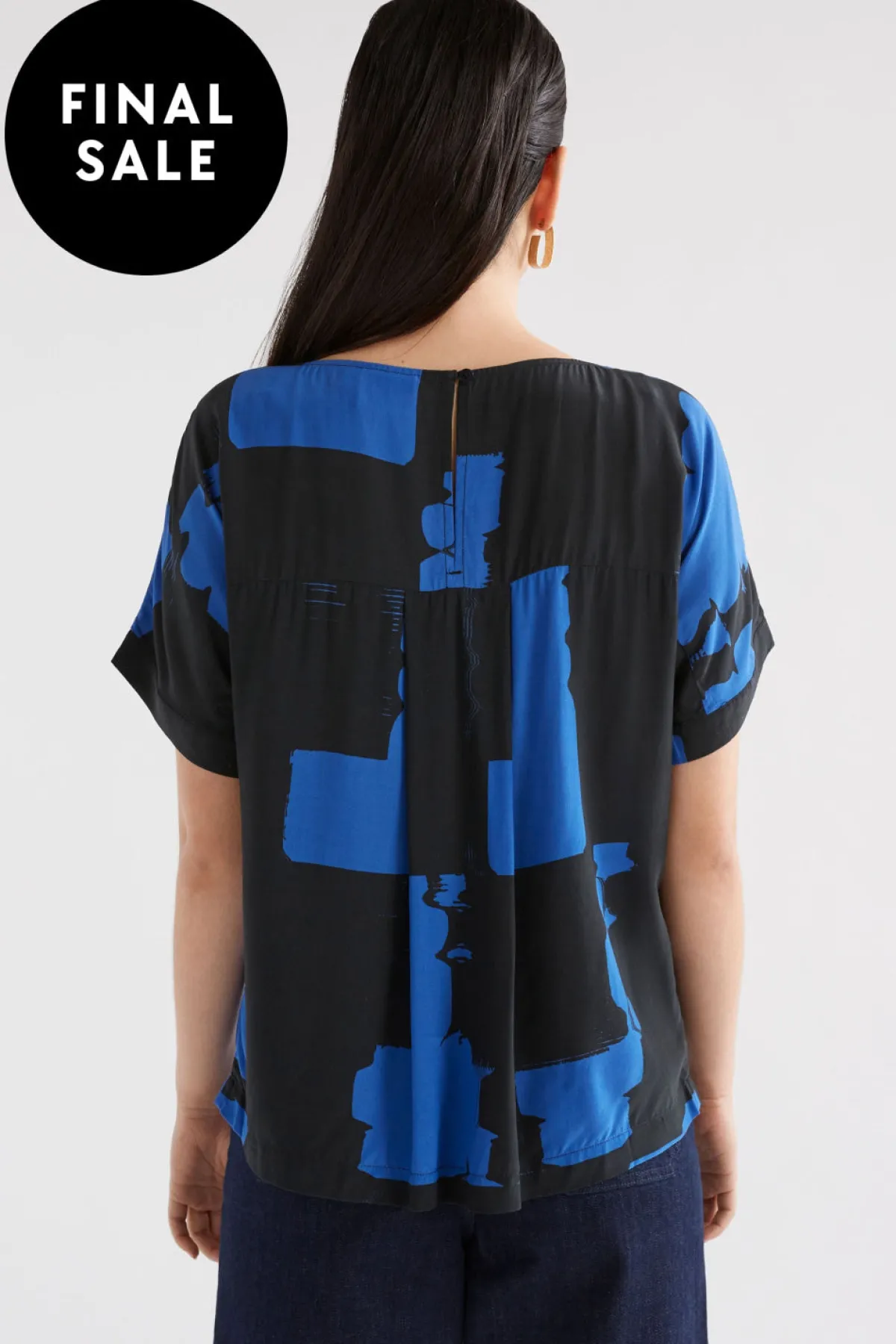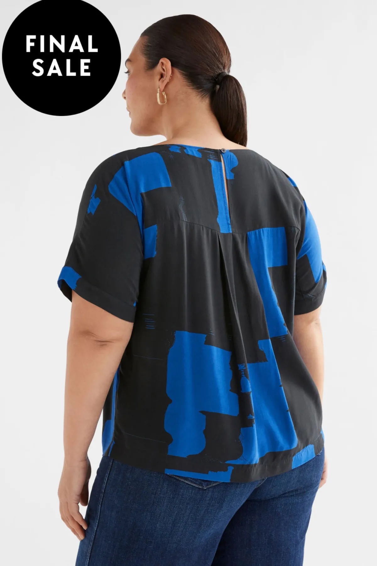 The Eneste Top is a boat neck top, featuring the limited seasonal Blue Rolla Print – an abstract print in complementary hues of blue. The top’s dropped shoulder extend into comfortable cap sleeves that stop half way up the arm, offering coverage.