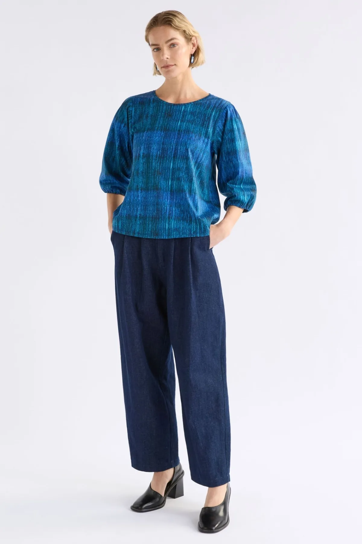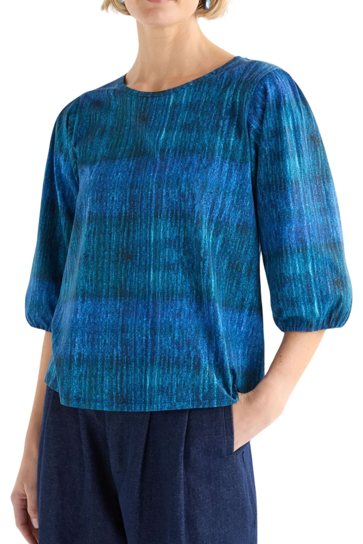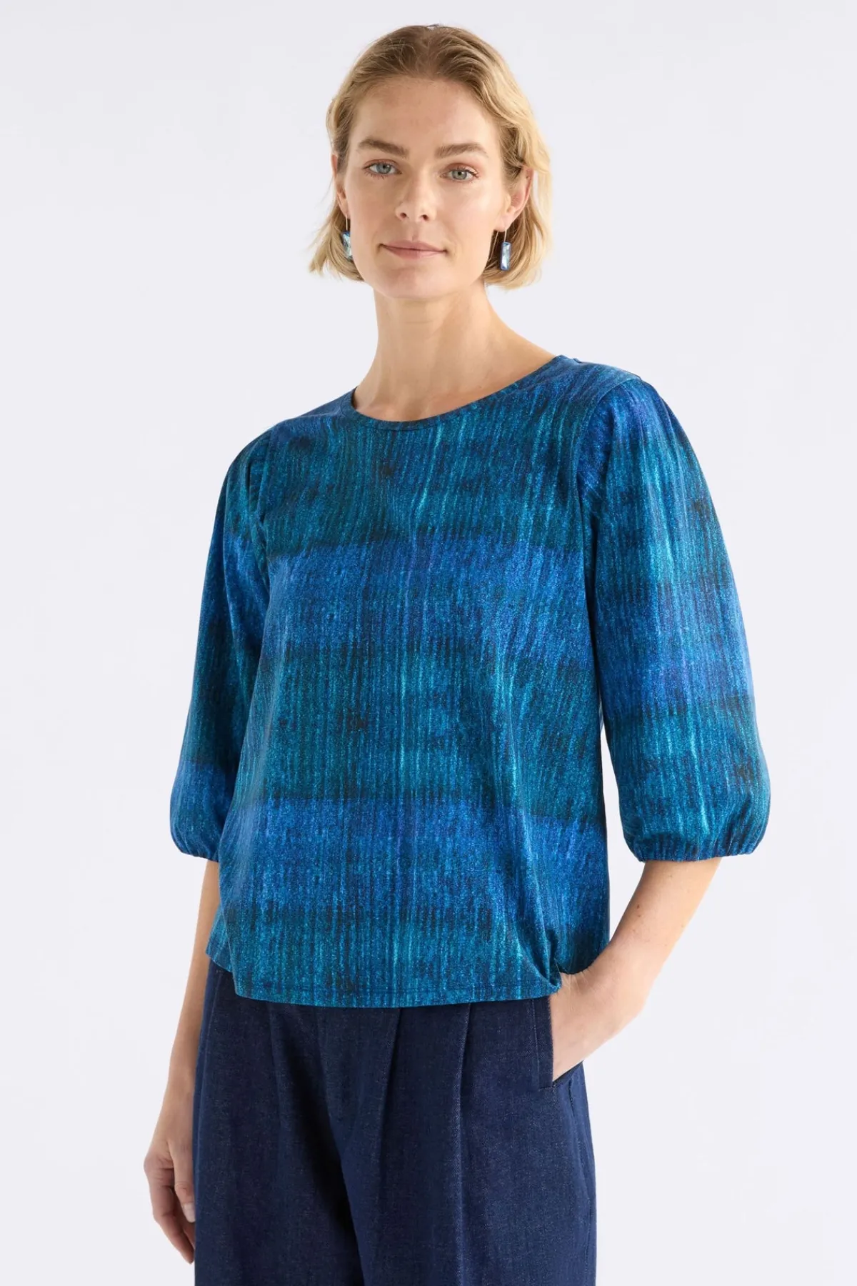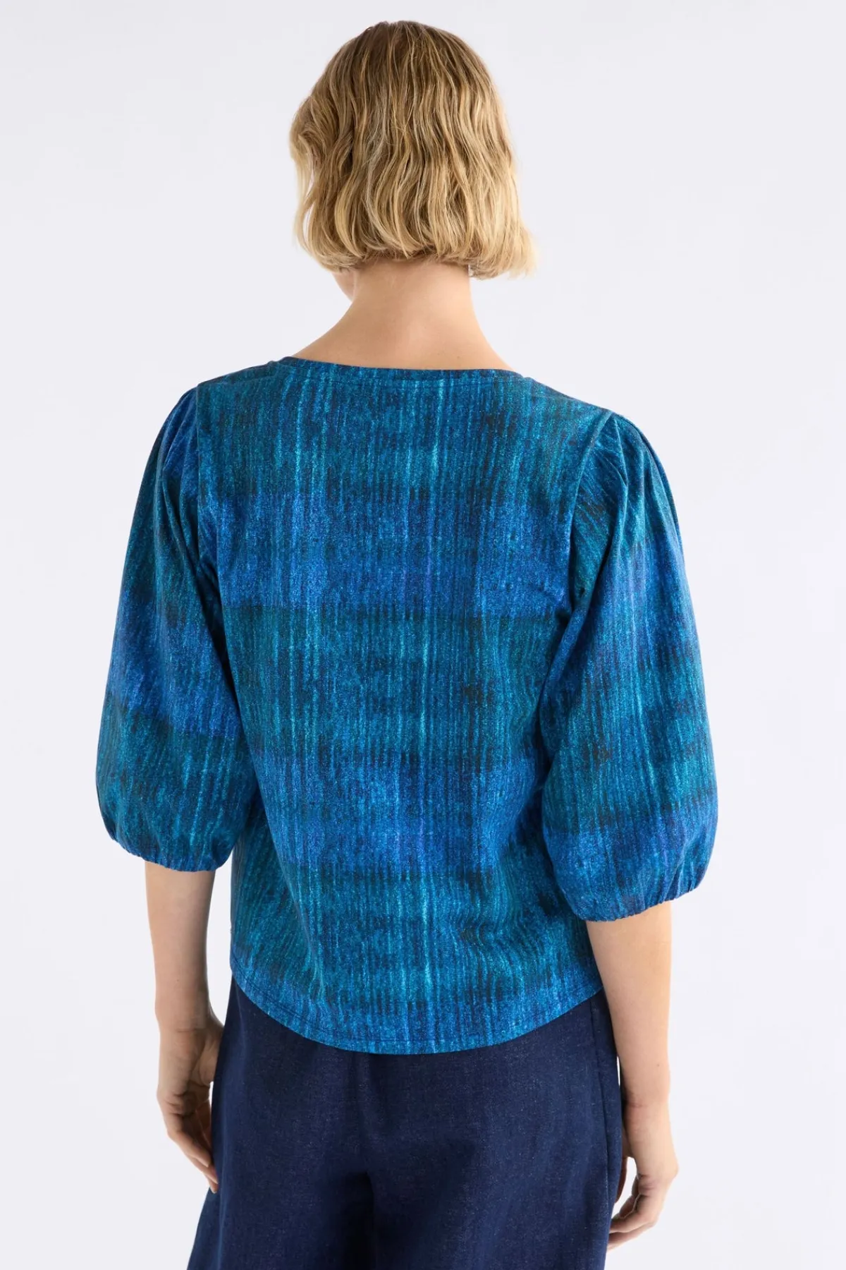 An ELK favourite shape, the Maer Tee, now in the fresh Mikko print. Featuring balloon-like, three-quarter sleeves, created from subtle shoulder tucks and a lightweight woven cotton lining in the sleeve to give subtle volume. Crafted from an organic cotton, stretch jersey, this is the perfect piece to take from desk to dinner.