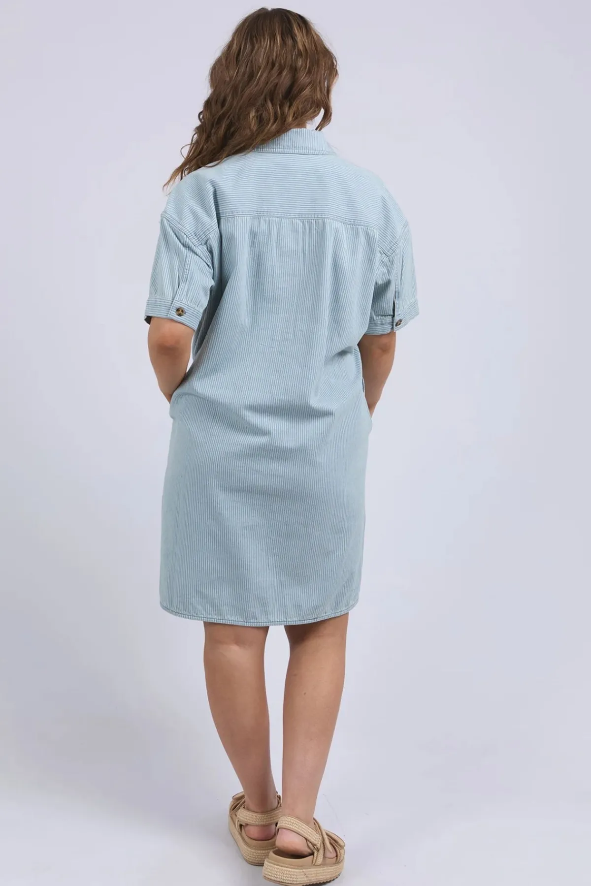 ELM Dresses-JENNA STRIPE DENIM DRESS BLUE-WHITE