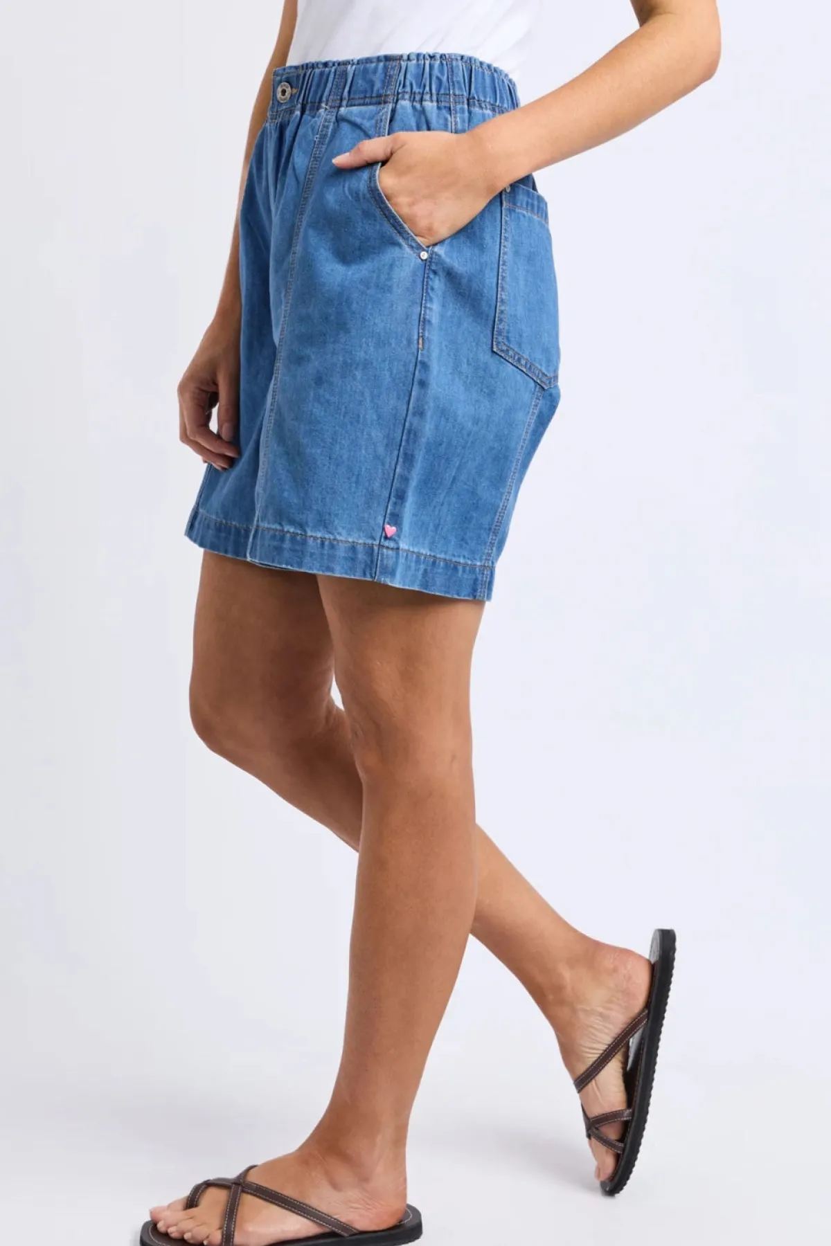 Say hello to the Jovie Denim Short, ultimate everyday comfort, elastic waist, and knee length. Style it your way for an effortless look that works for any day of the week.