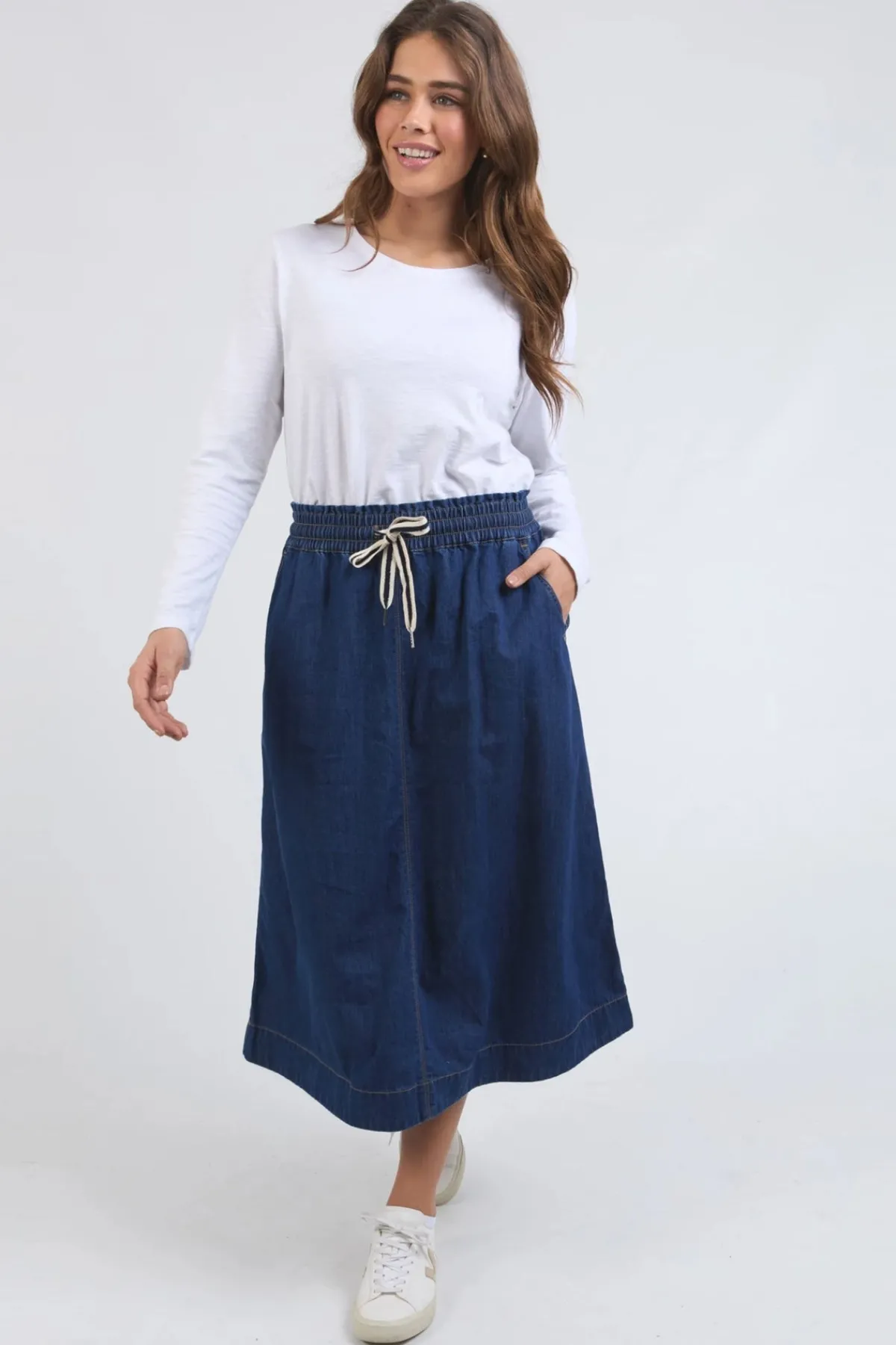 Inspired by Elm’s best-selling Greta Wide Leg Pant, the new Greta Skirt in mid-weight rigid denim is easy to wear and is ideal for those who prefer a denim skirt instead of jeans! Featuring a wide elastic with a drawstring waist for extra comfort, you’ll reach for this skirt repeatedly.